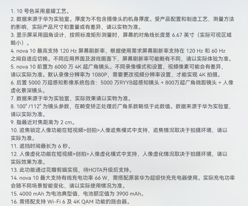 华为(HUAWEI)nova 10 128GB 曜金黑【小时达】