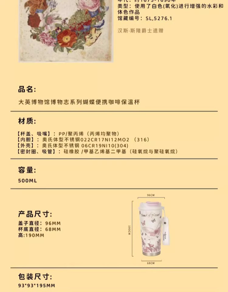 物兮物×大英博物馆 东方梦境系列灵羽芳地便携咖啡保温杯500ml