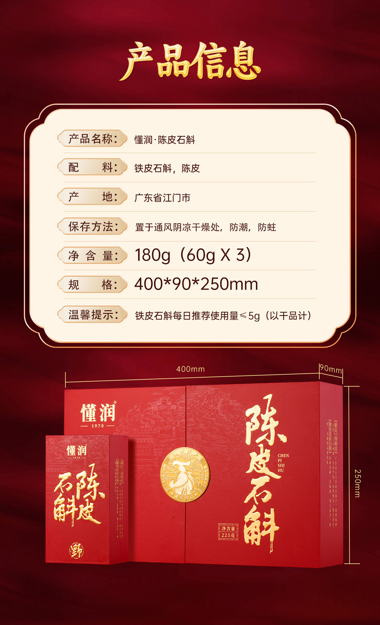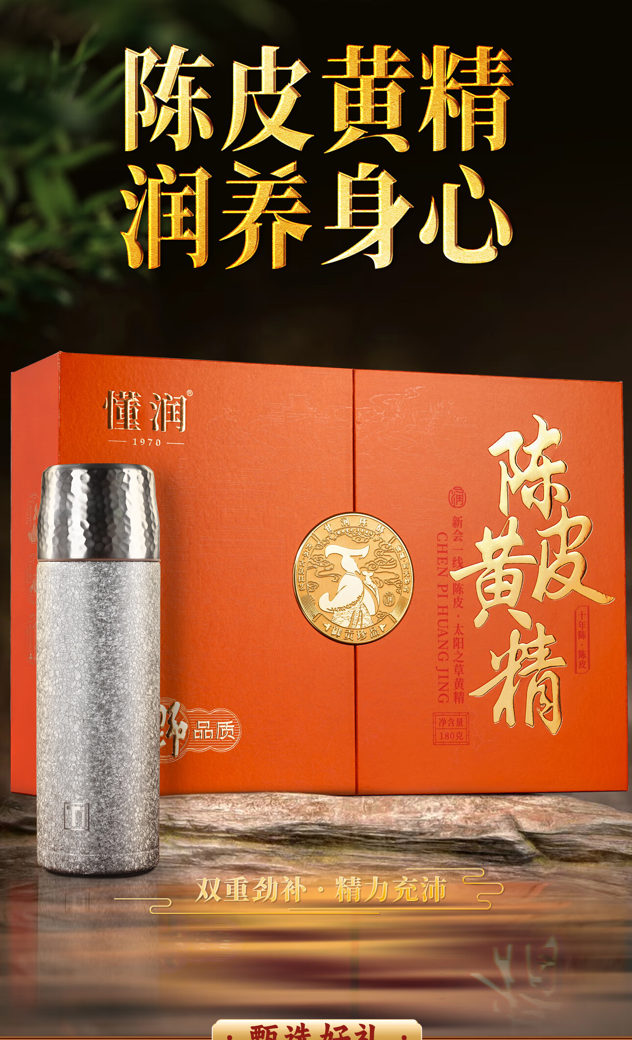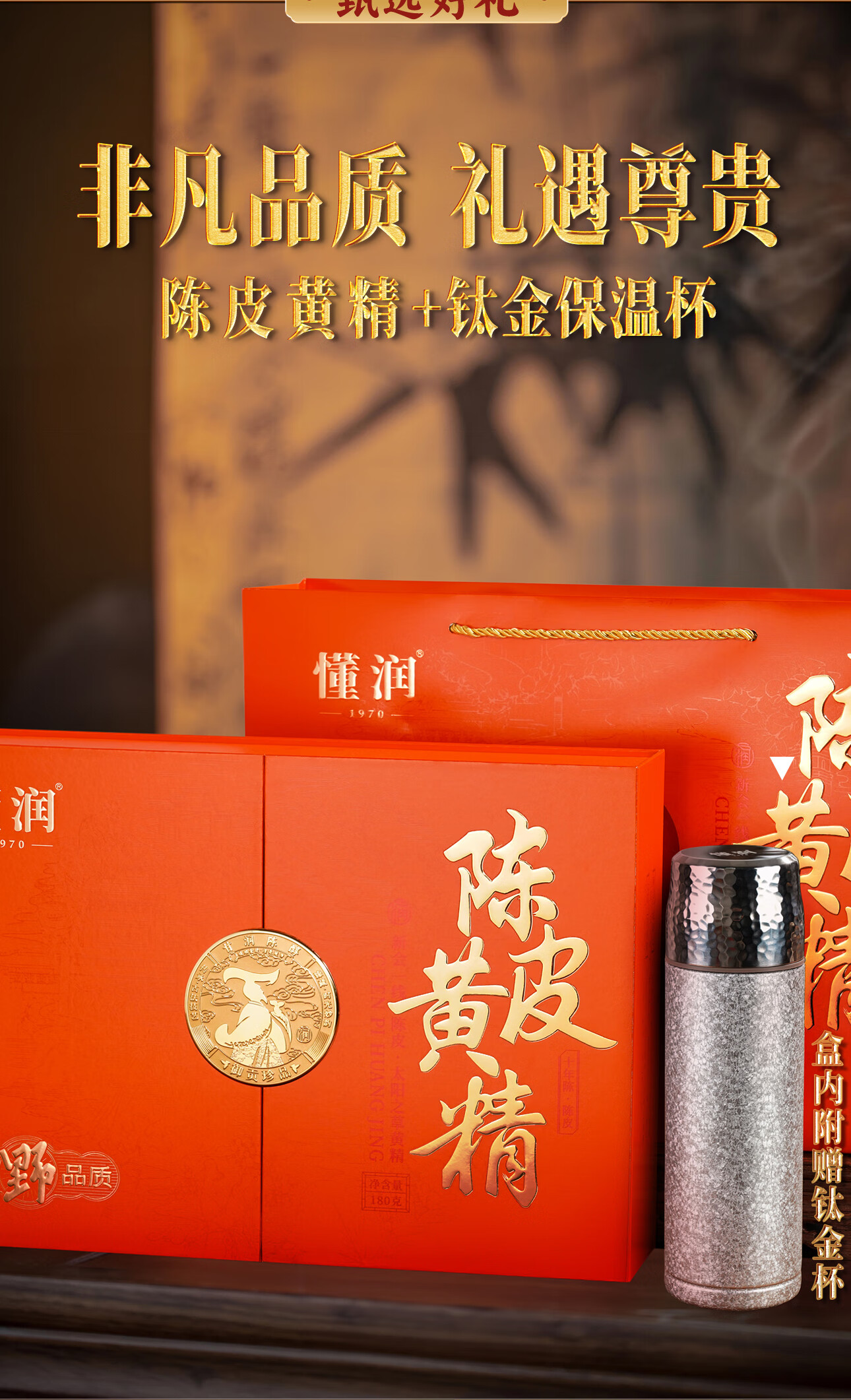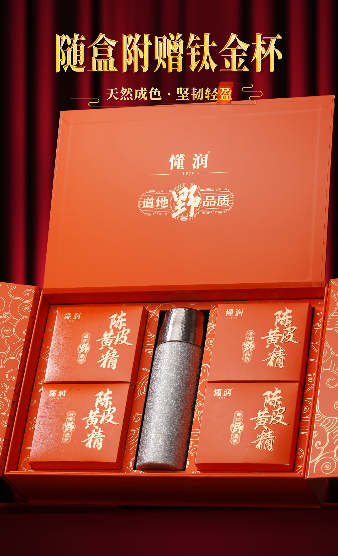 【懂润】钛金杯陈皮黄精礼盒180g+陈皮石斛中国红高级礼盒225g