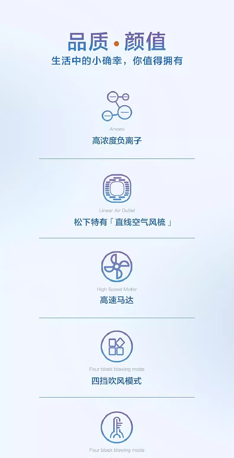 松下小吹筒电吹风机负离子护发家用恒温学生速干EH-PNEGMH405