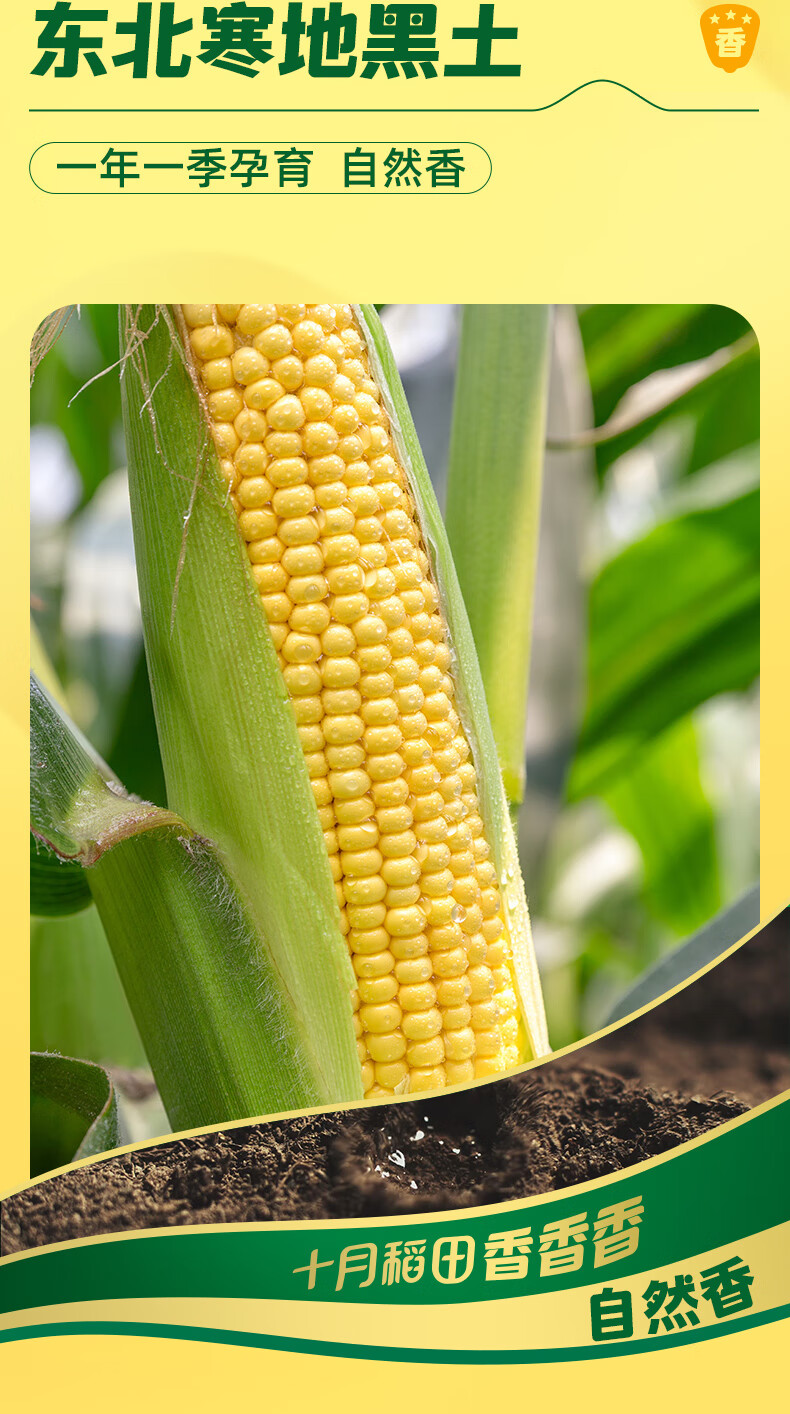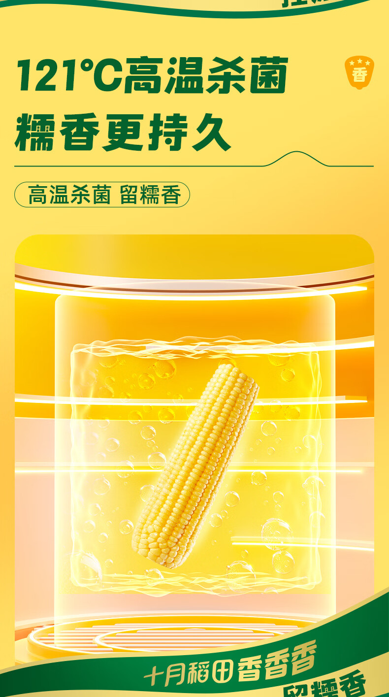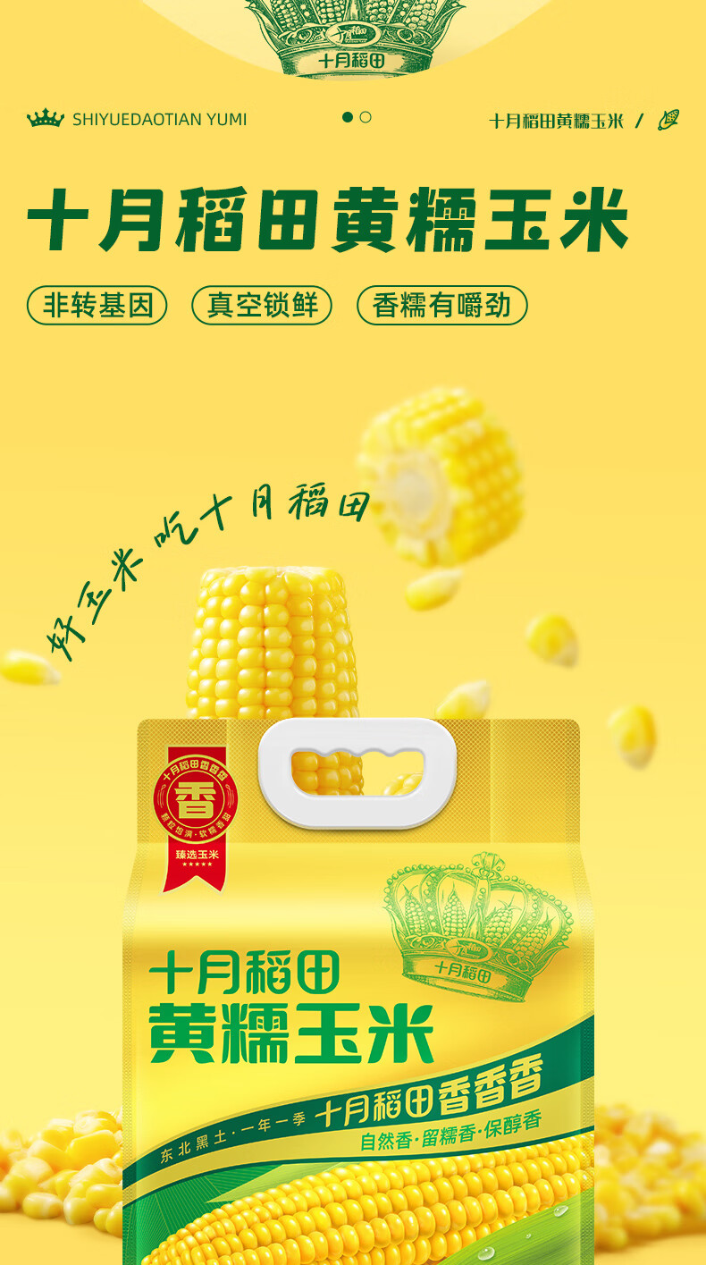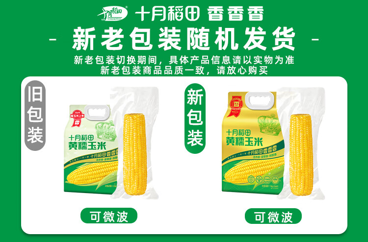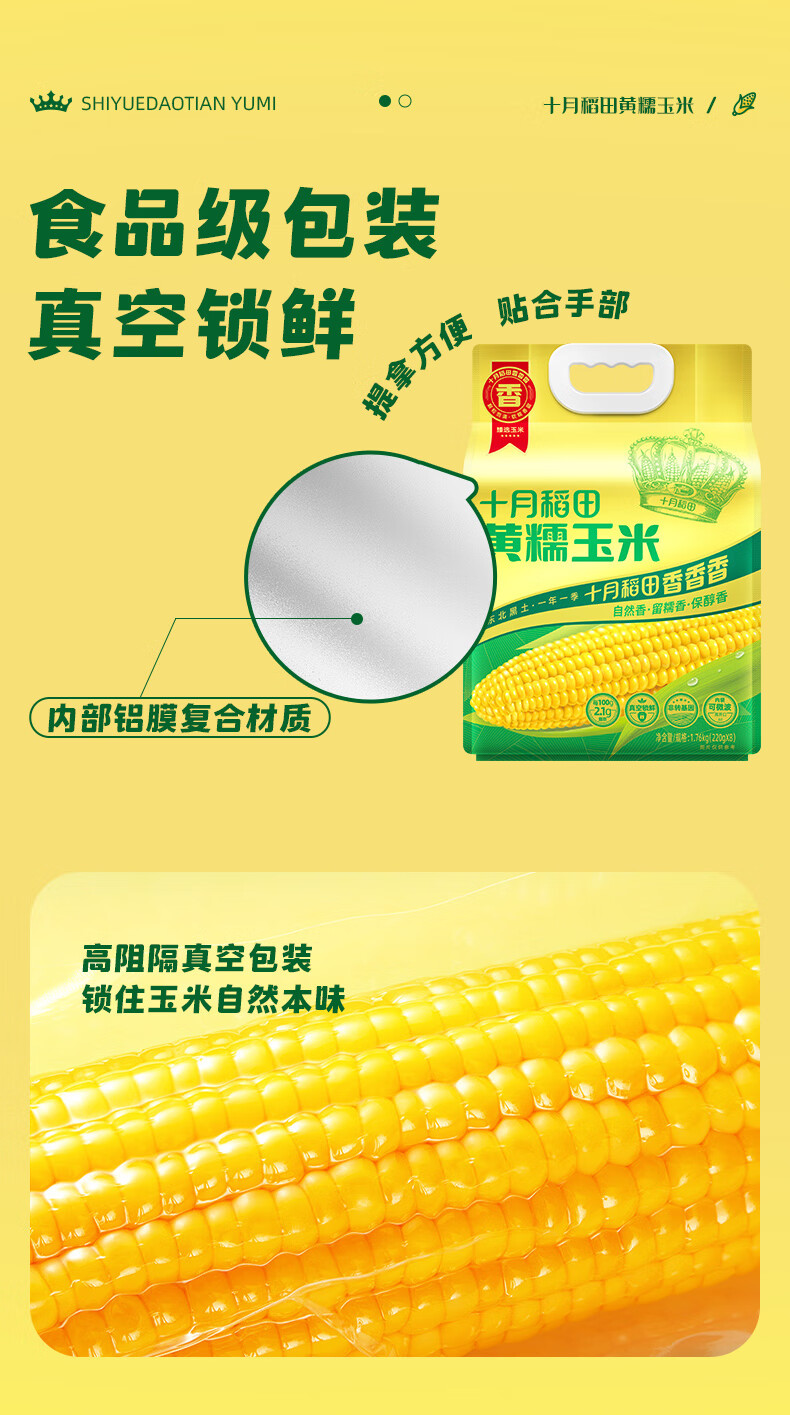 十月稻田 黄糯玉米 3.52斤(220g*8根) 东北甜黏玉米棒 早餐苞米 真空包装