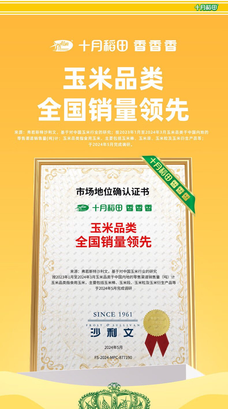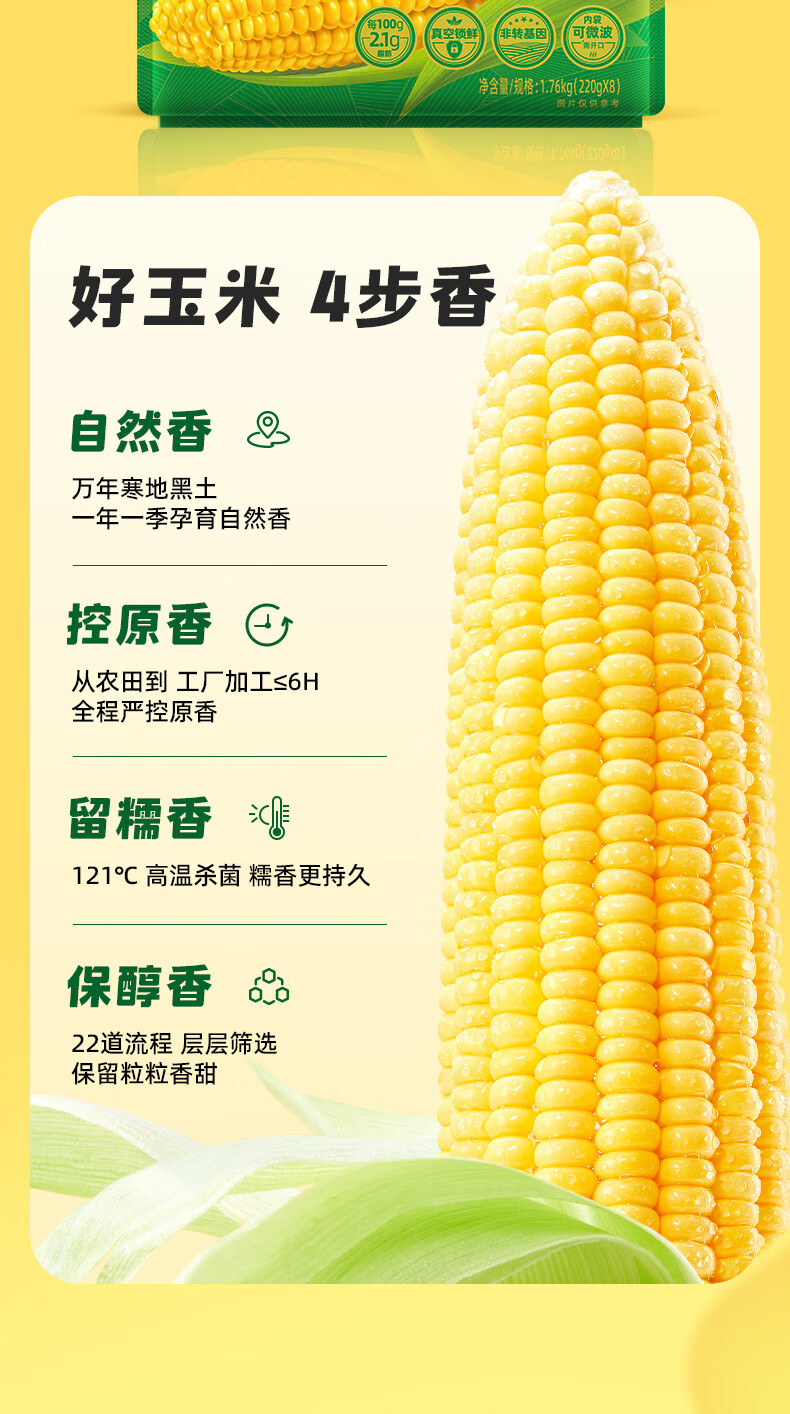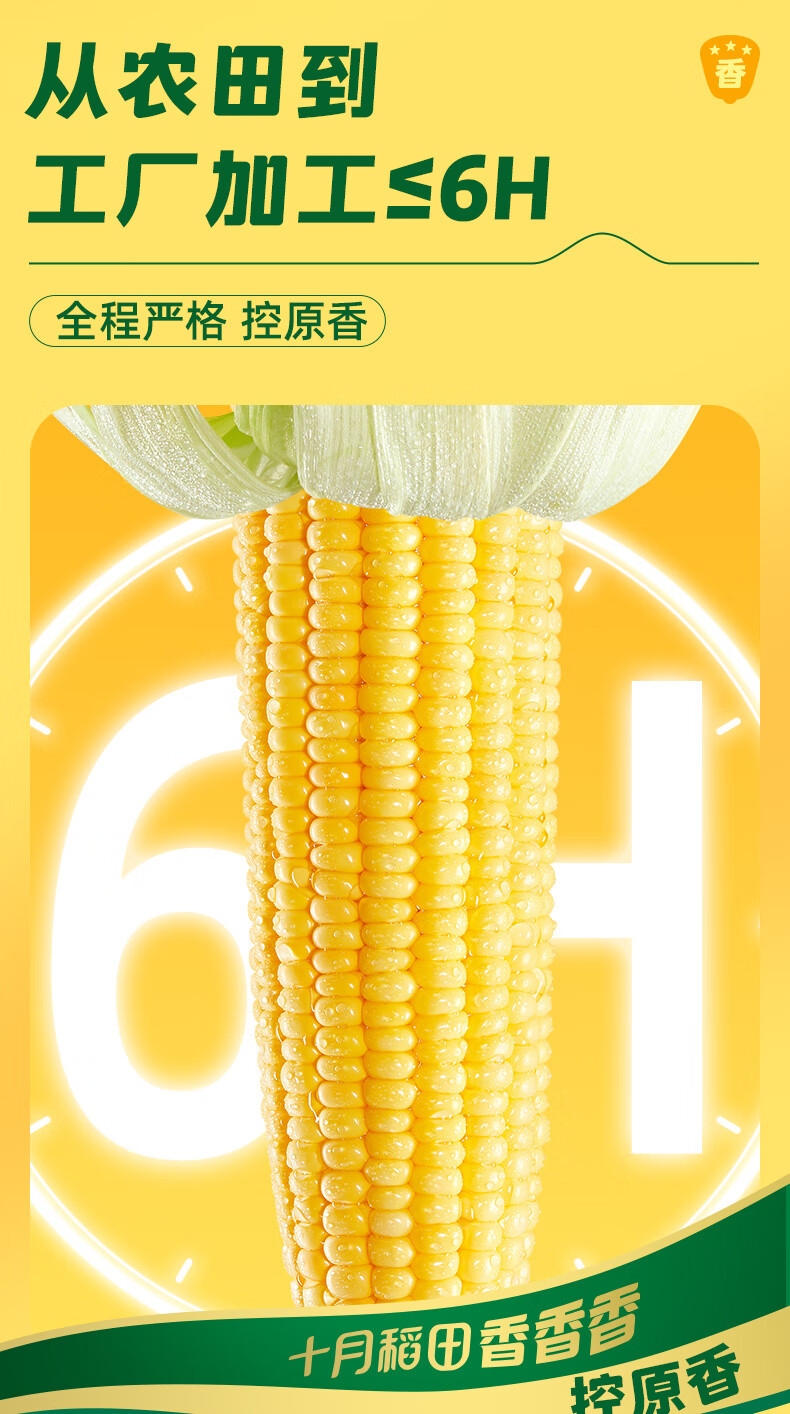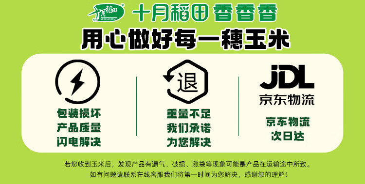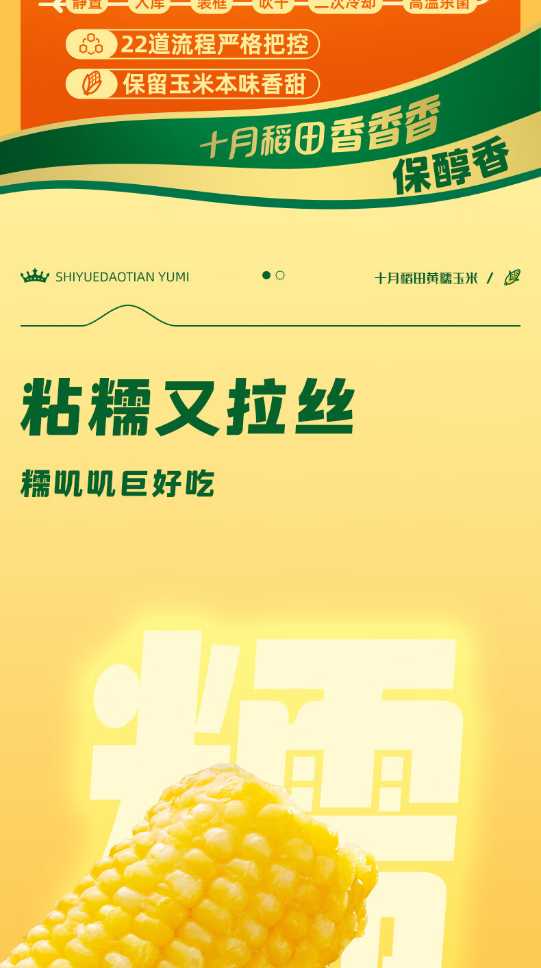 十月稻田 黄糯玉米 3.52斤(220g*8根) 东北甜黏玉米棒 早餐苞米 真空包装