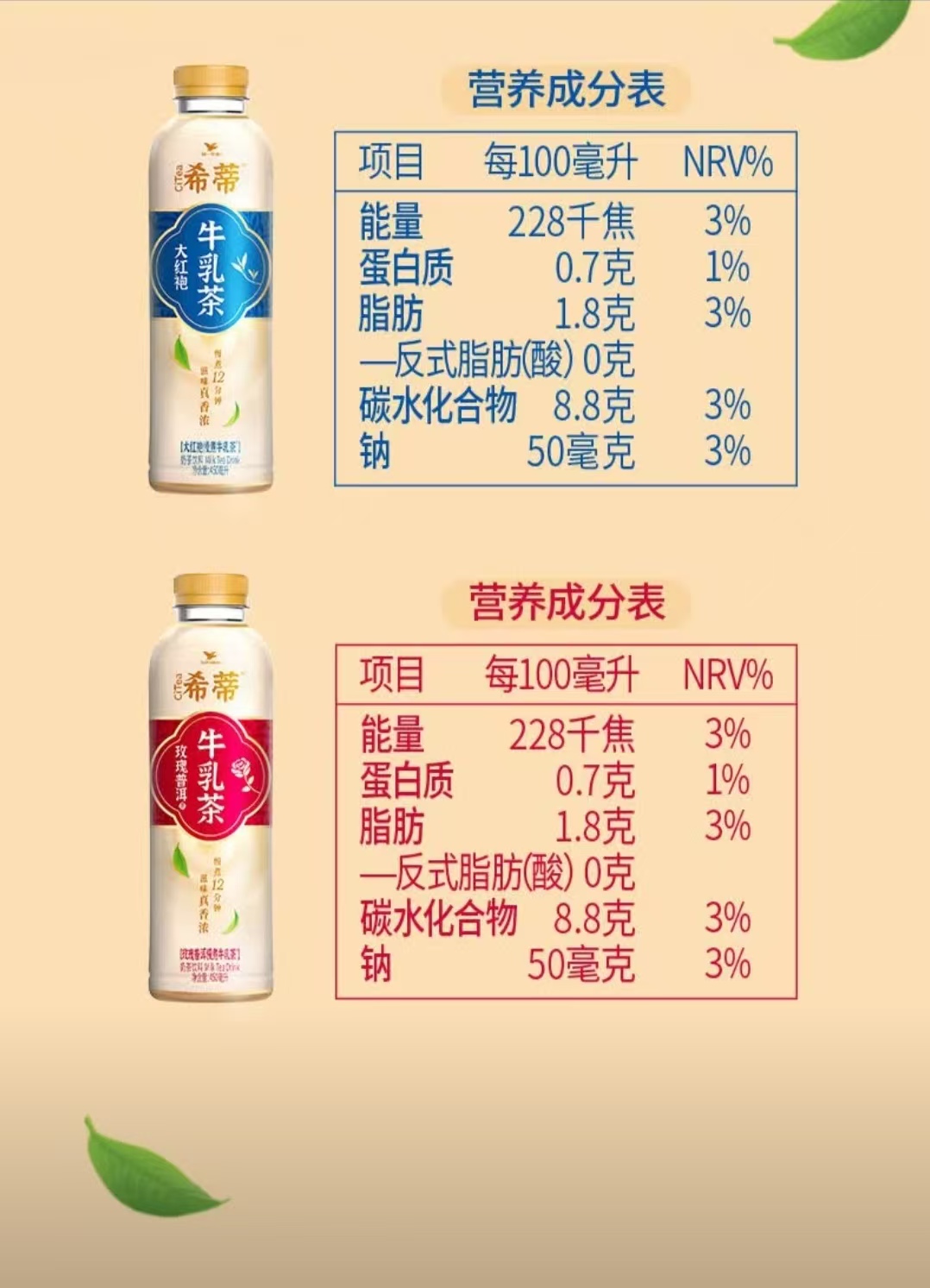 统一希蒂大红袍牛乳茶450ml*15