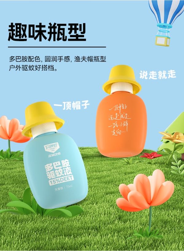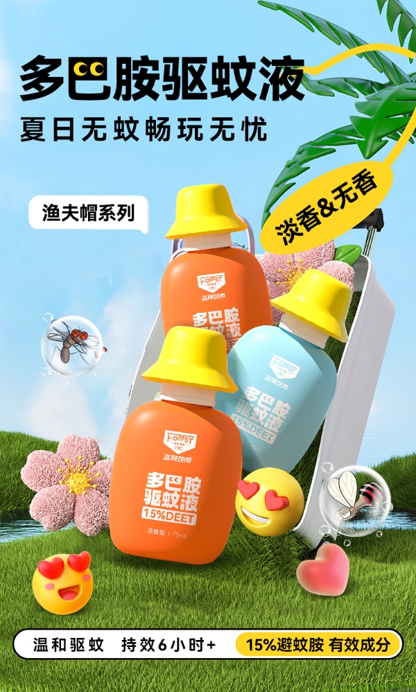 森林地带驱蚊液75ml多巴胺渔夫帽(15%避蚊胺无香)【SLDD010】
