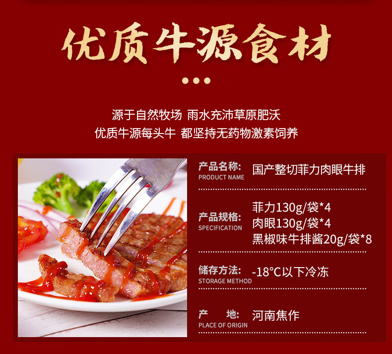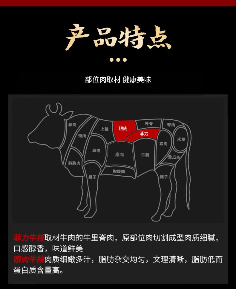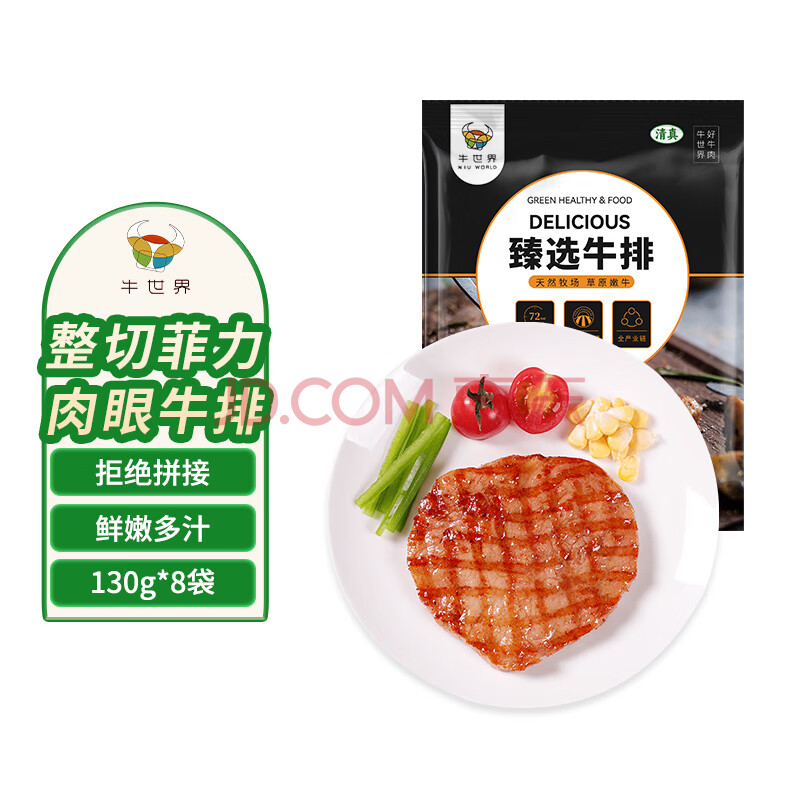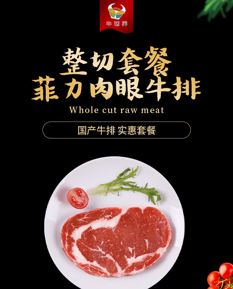 牛世界整切菲力肉眼牛排组合套餐130g*8袋 生鲜冷冻整切调理牛排