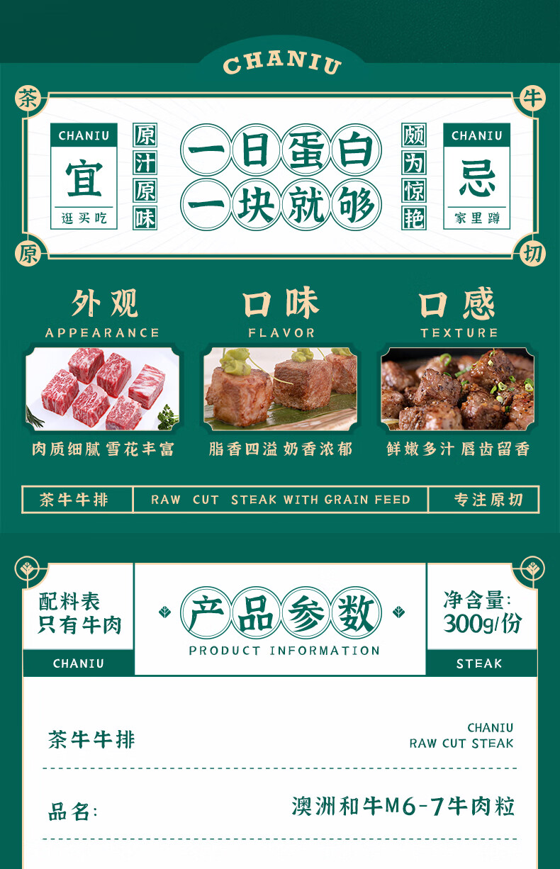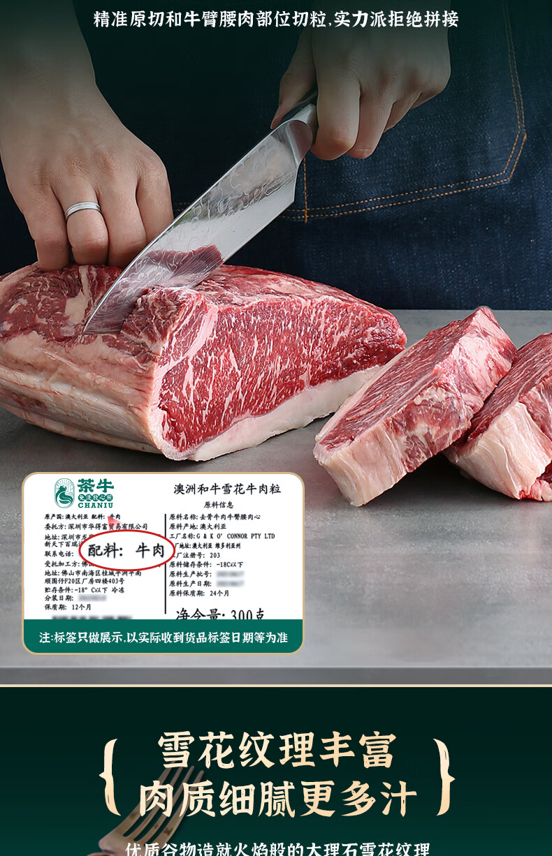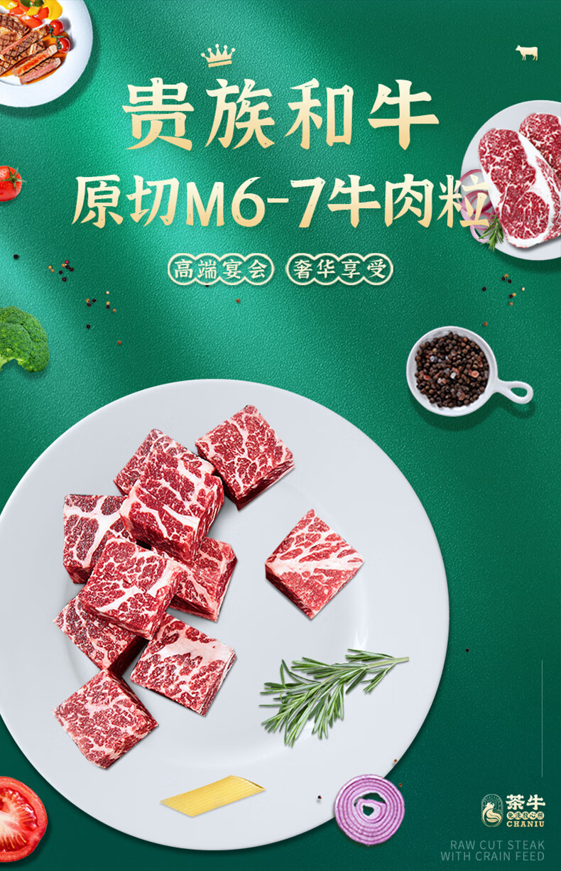 茶牛原切牛肉粒 生鲜 澳洲和牛M6-M7烧烤牛肉粒300g*2份谷饲冷冻中秋