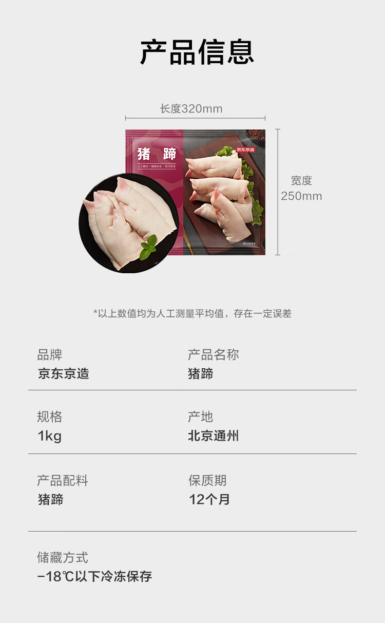 京东京造猪蹄1kg(需冷水或冷藏至完全解冻后烹饪)炖猪蹄