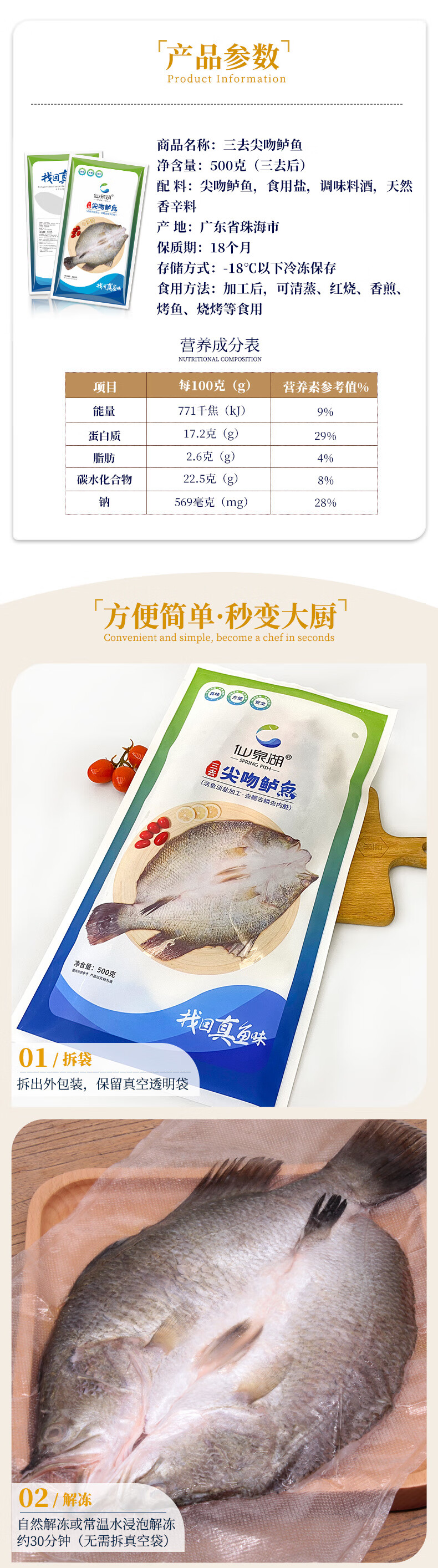 仙泉湖三去尖吻海鲈鱼 500g*1条 冷冻净膛金目鲈肉厚 海鲜水产食材