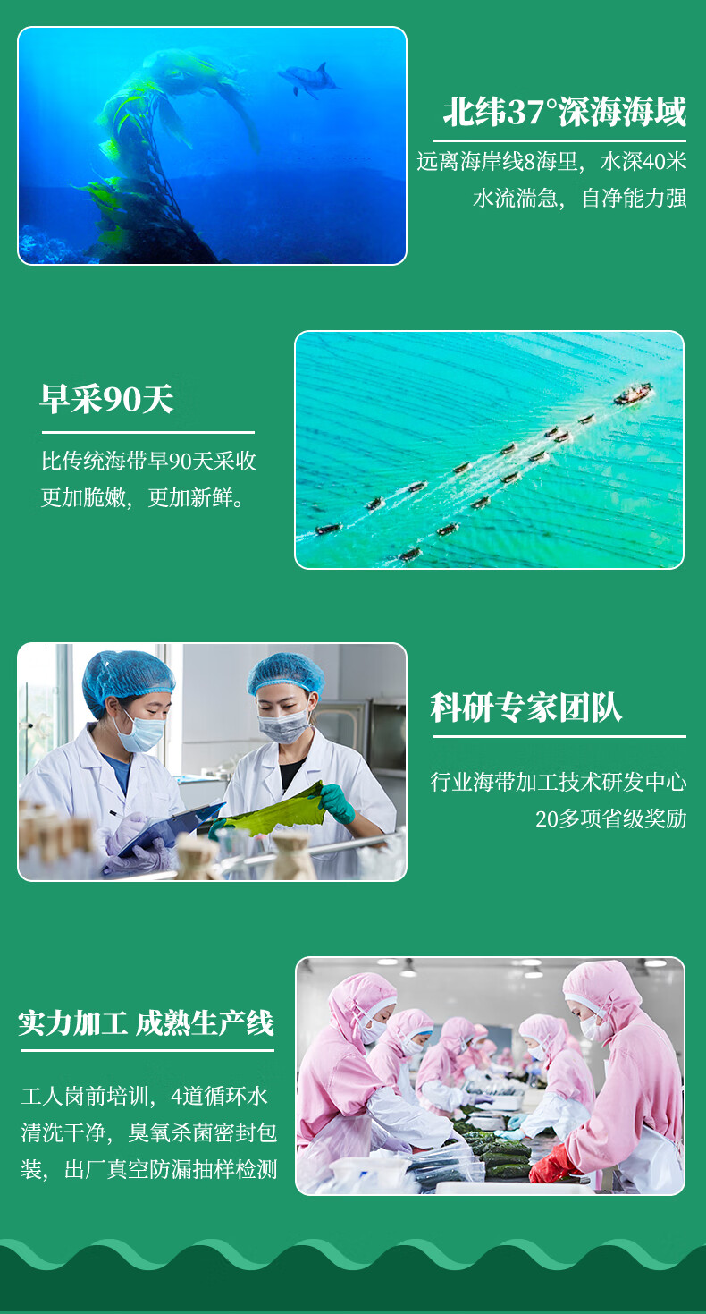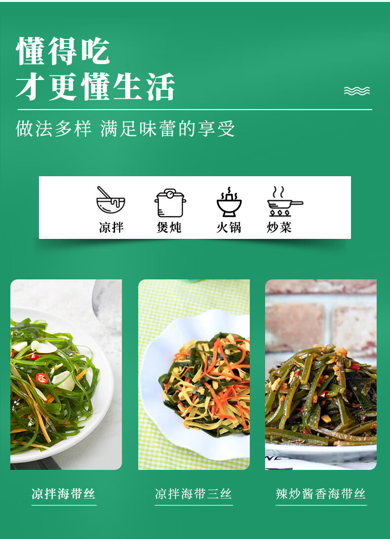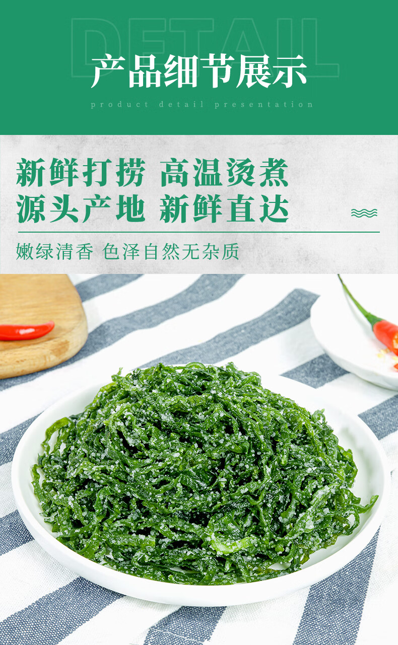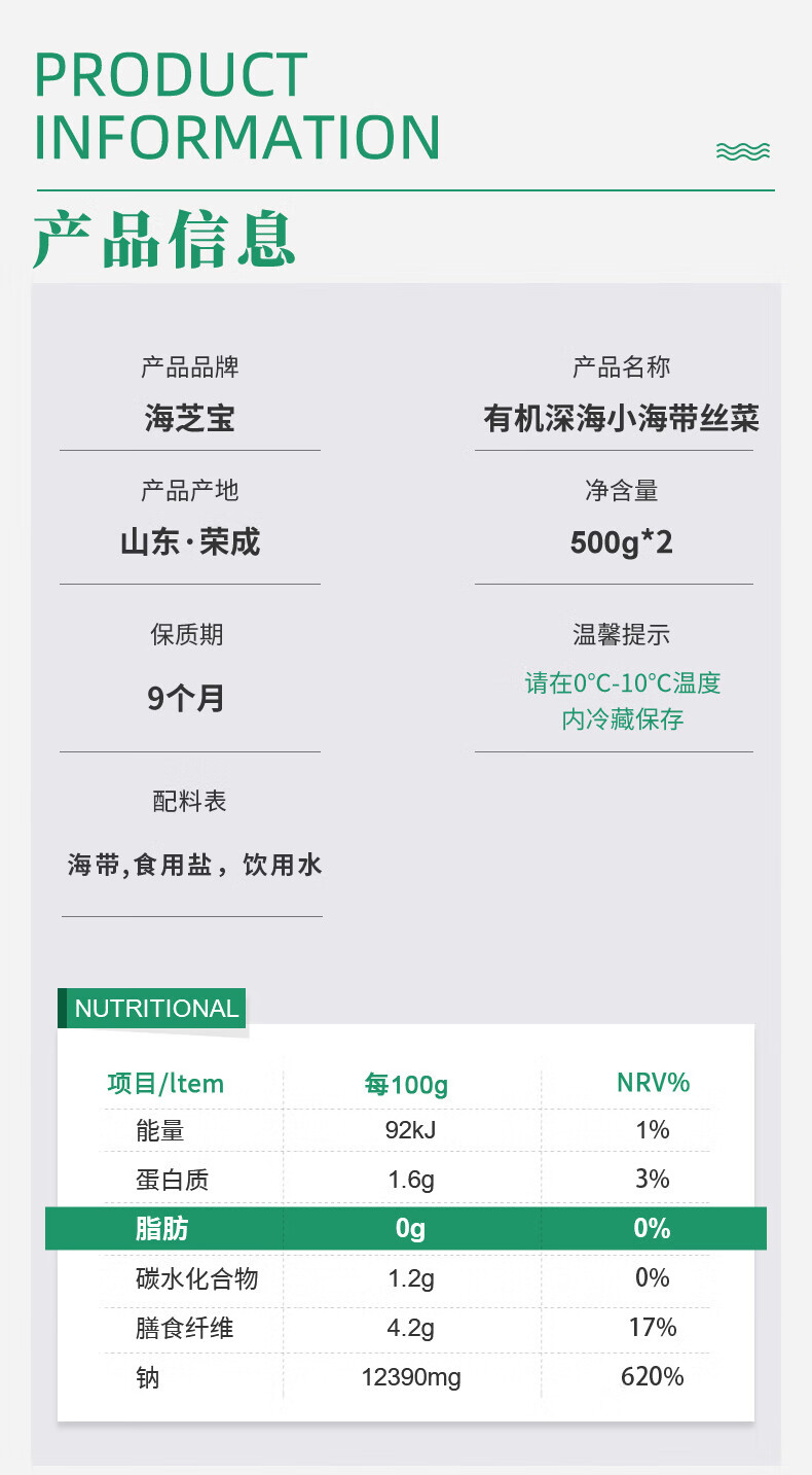 海芝宝 国产有机新鲜盐渍海带丝 500g*2袋 凉拌裙带食材 生鲜海鲜水产