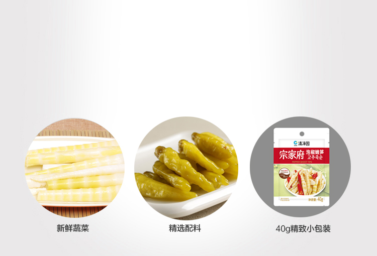 清净园宗家府泡椒嫩笋40g*10袋 袋装咸菜方便面伴侣下饭菜