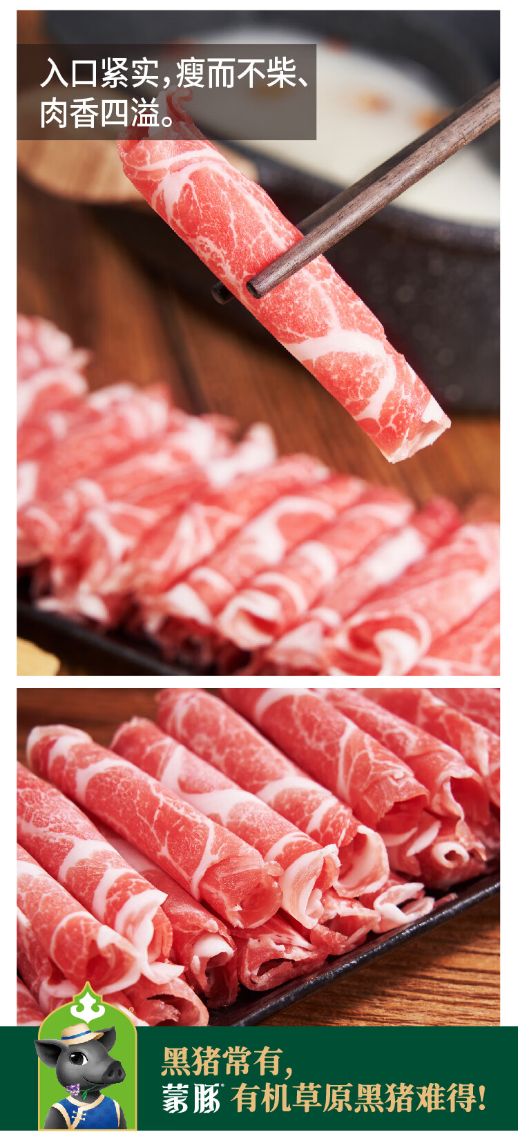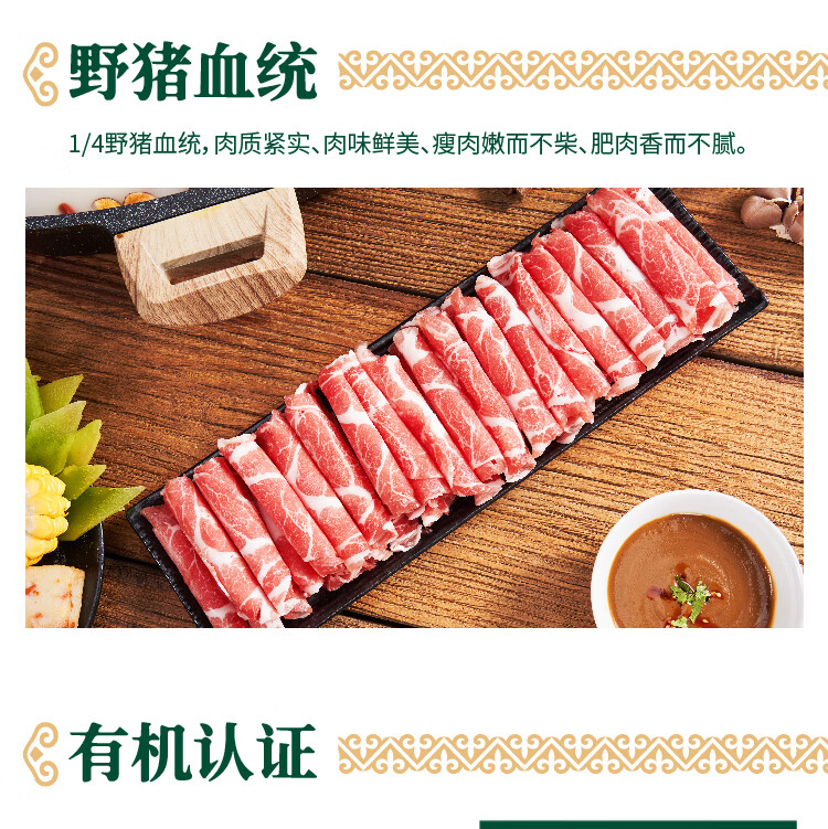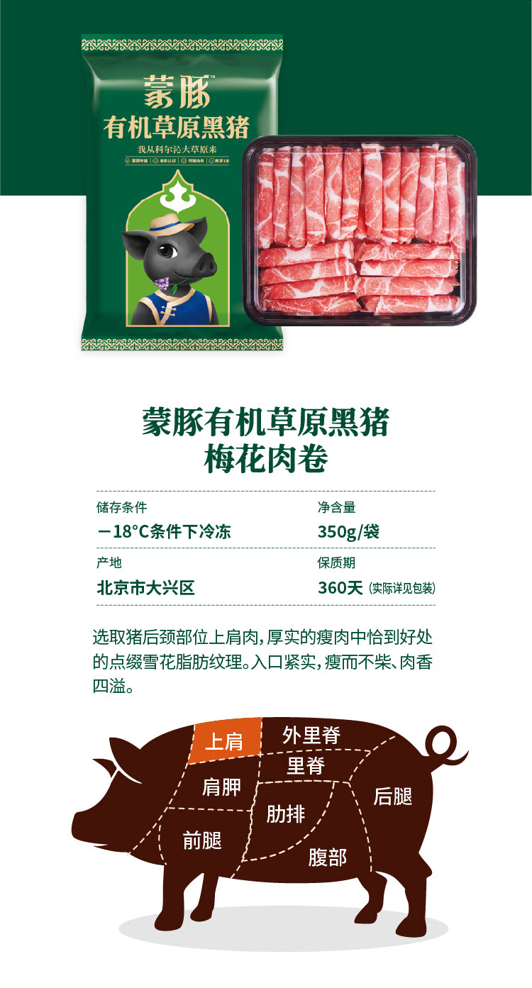 蒙豚 有机草原黑猪 原切五花肉卷350g 土猪肉 涮肉片 年货 火锅 生鲜