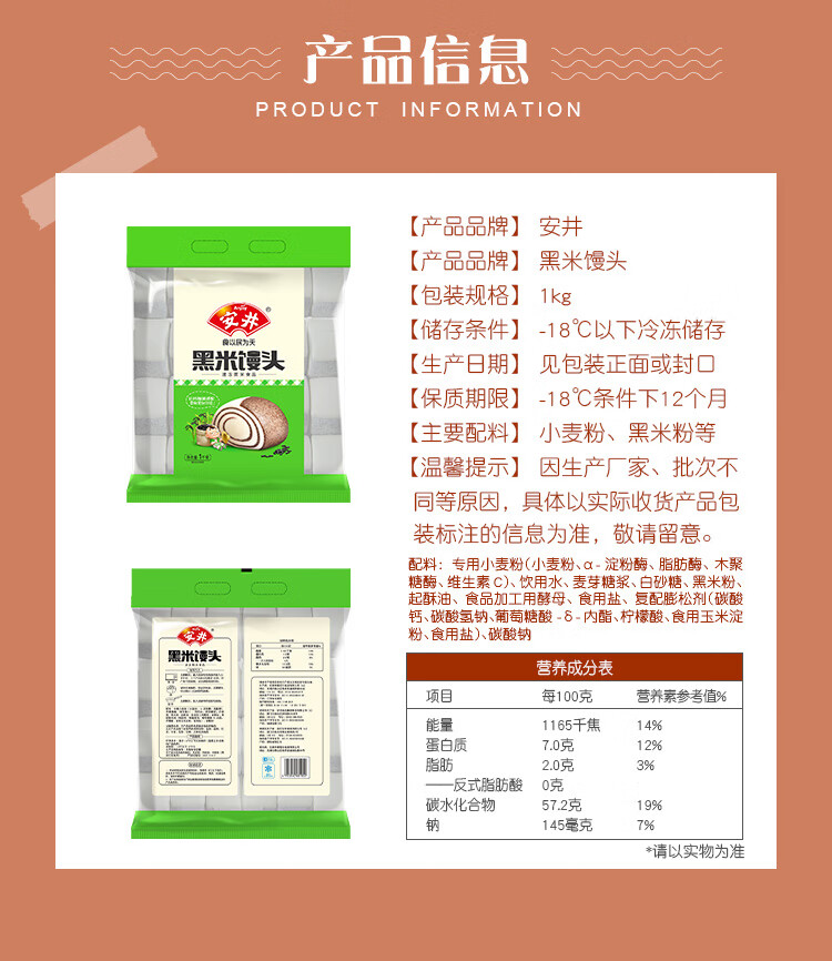 安井 黑米馒头 1kg 2斤装约48个 杂粮馒头包子 传统加热即食糕点早餐