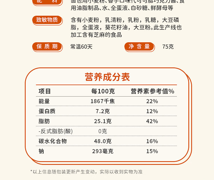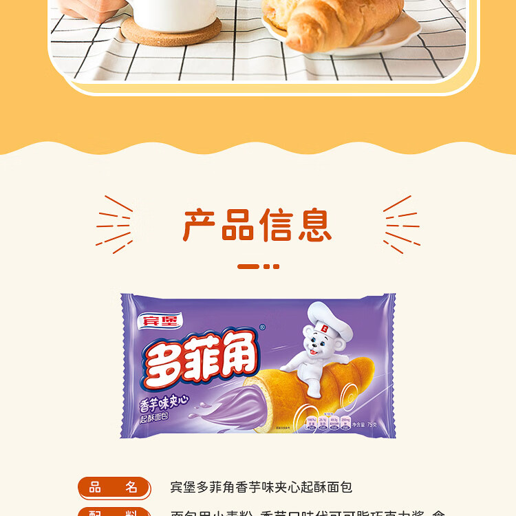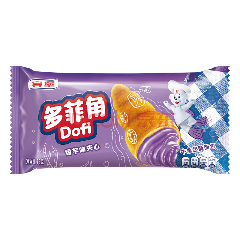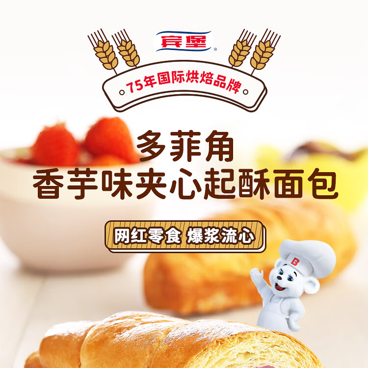 宾堡 多菲角 香芋味75g 巧克力夹心牛角包手撕面包 早餐休闲零食