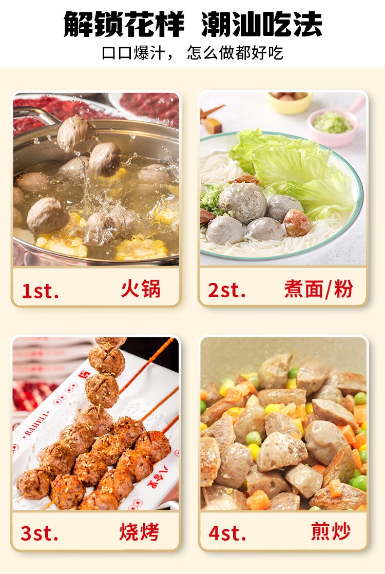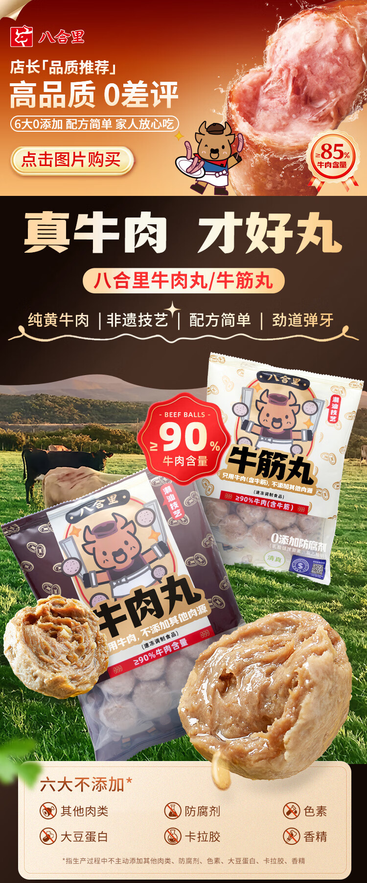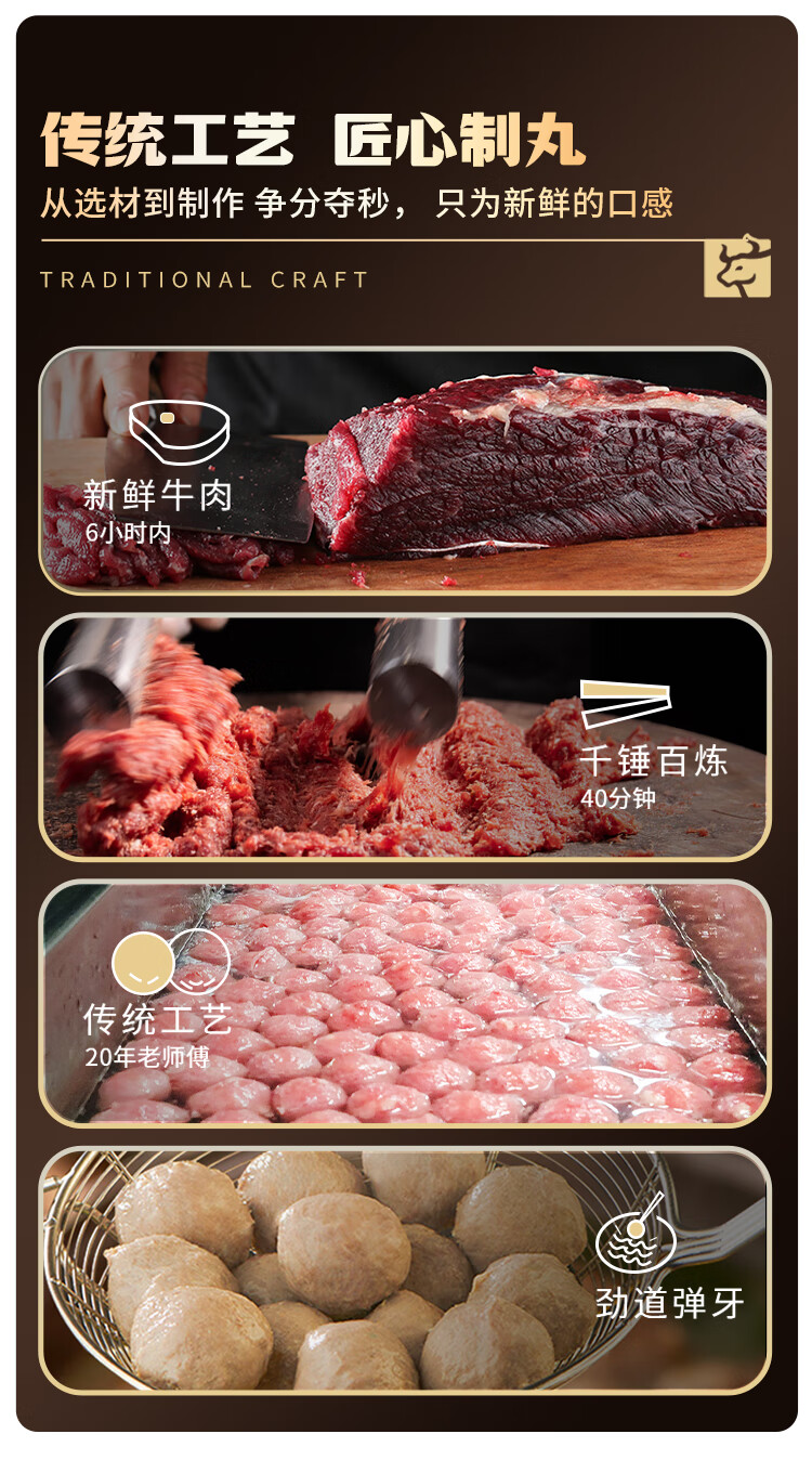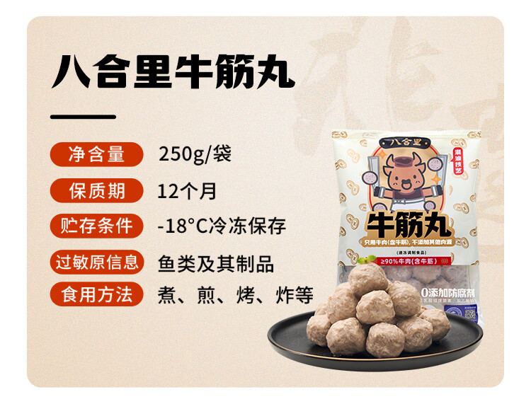 八合里潮汕手打牛筋丸 鲜牛肉制作 牛肉含量≥90% 门店口味 250g
