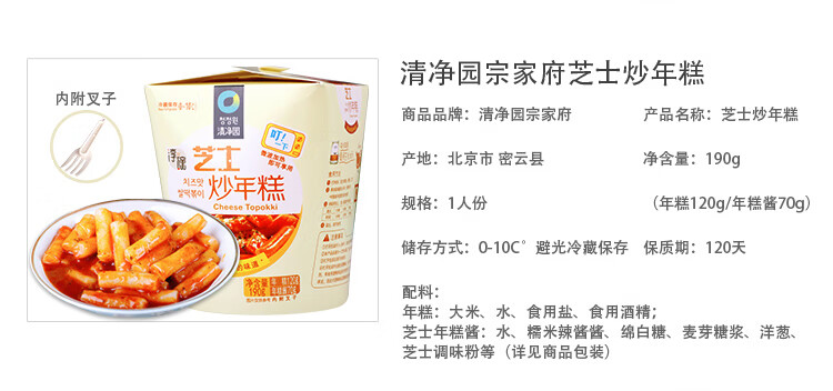 清净园芝士炒年糕 380g 2盒装 部队火锅 年糕条 韩国小吃