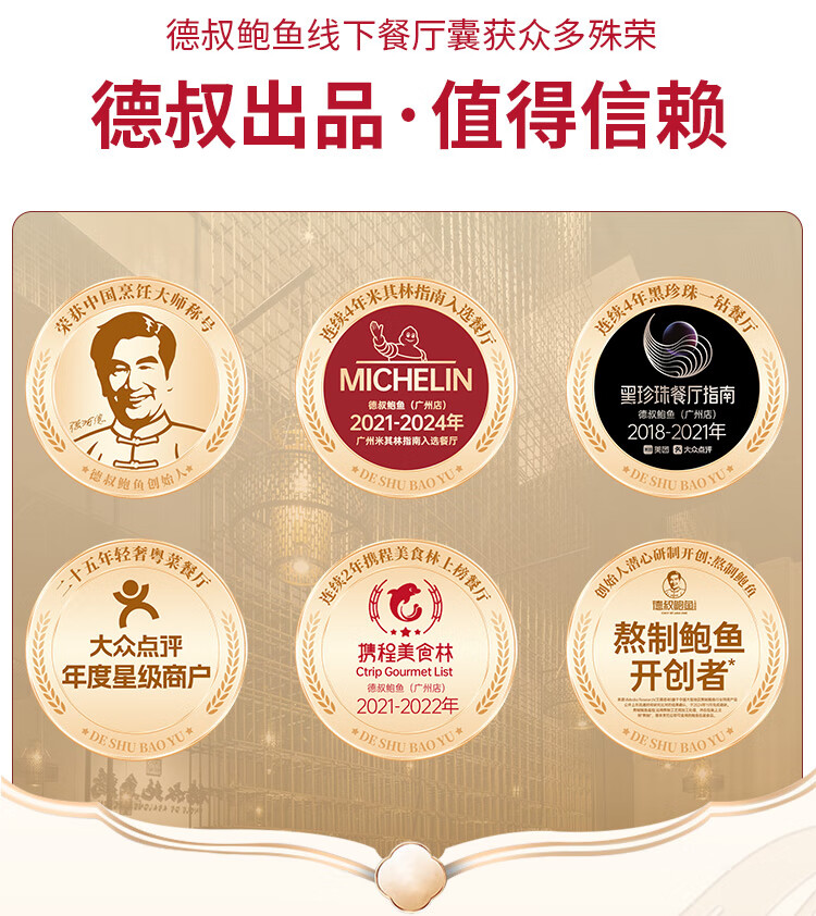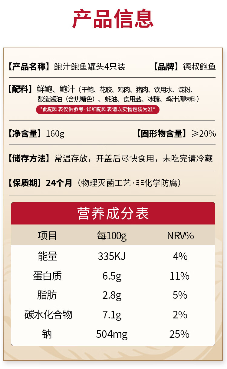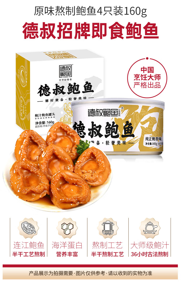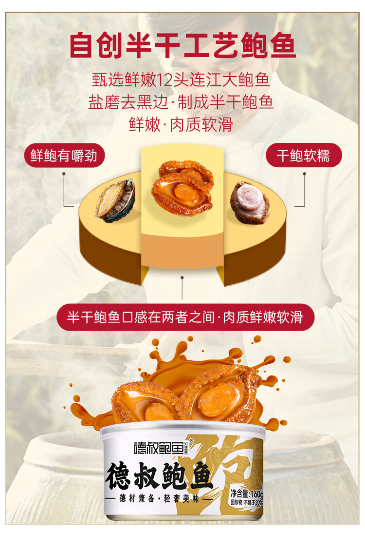 德叔鲍鱼即食熬制大鲍鱼罐头4只装160g京东自营店鲍鱼汁捞饭即食早餐速食