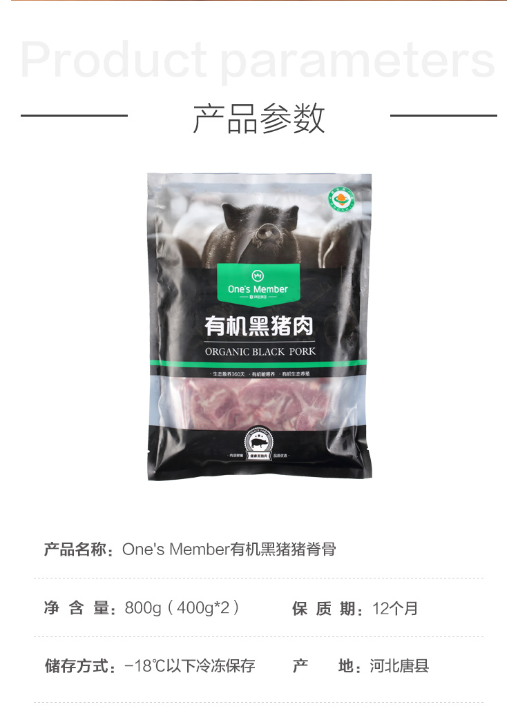 1号会员店有机黑猪脊骨800g 带肉猪龙骨猪骨火锅高汤食材 黑猪肉 生鲜