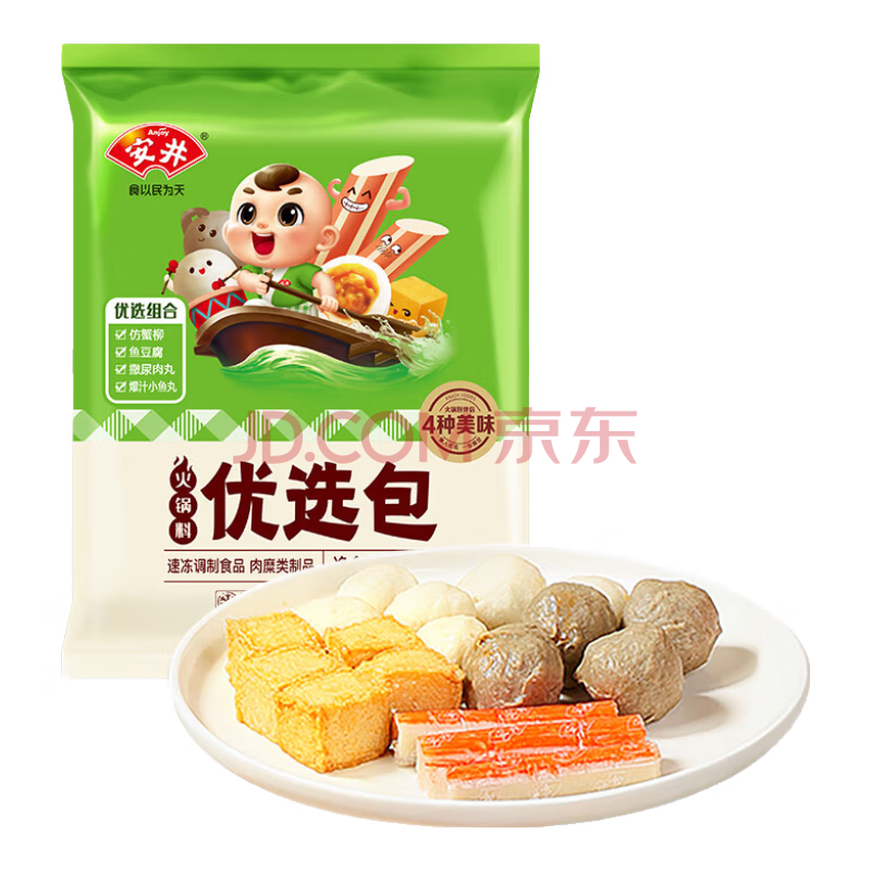 安井烧烤火锅食材丸子组合 400g 撒尿肉丸鱼豆腐仿蟹柳爆汁小鱼丸