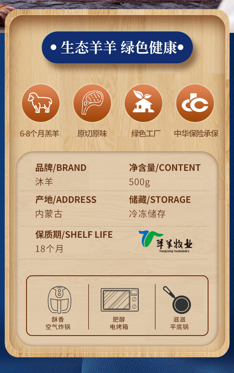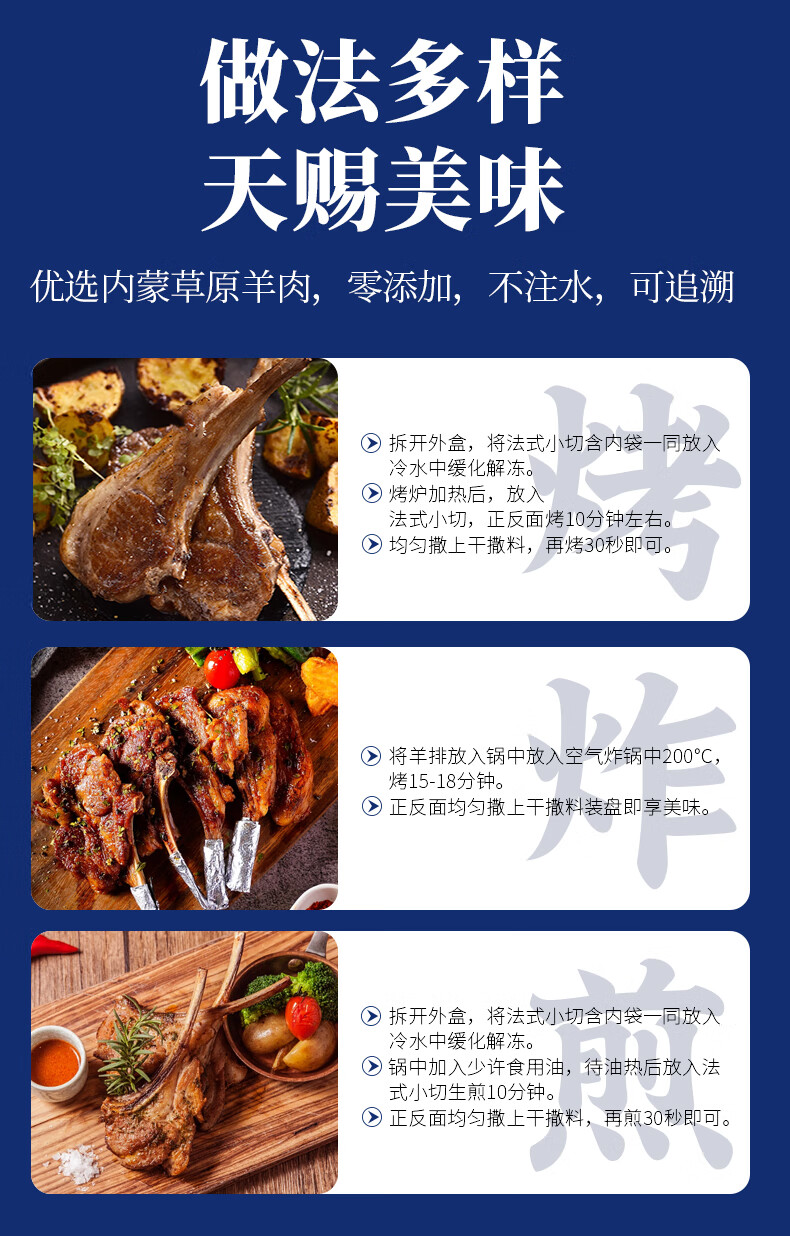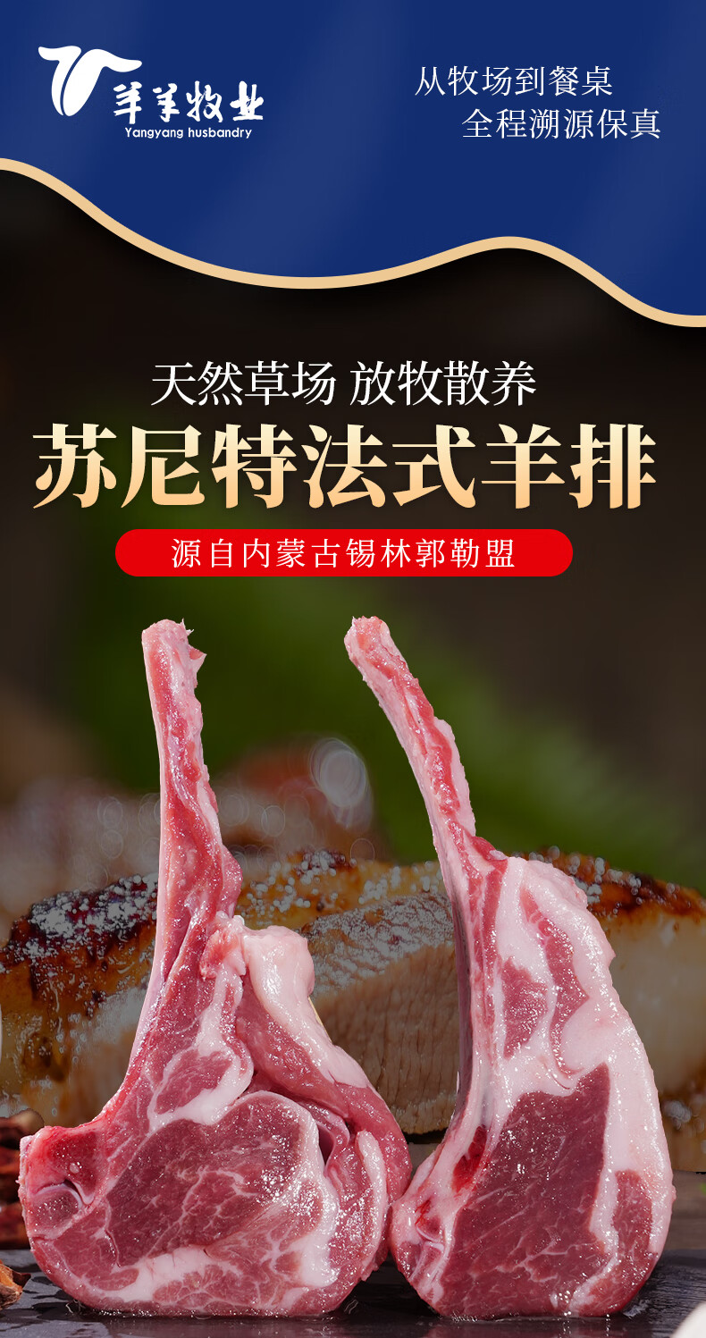 沐羊【草地羊】锡盟 苏尼特羊 草原羔羊 法式羊排500g 原切战斧肋排