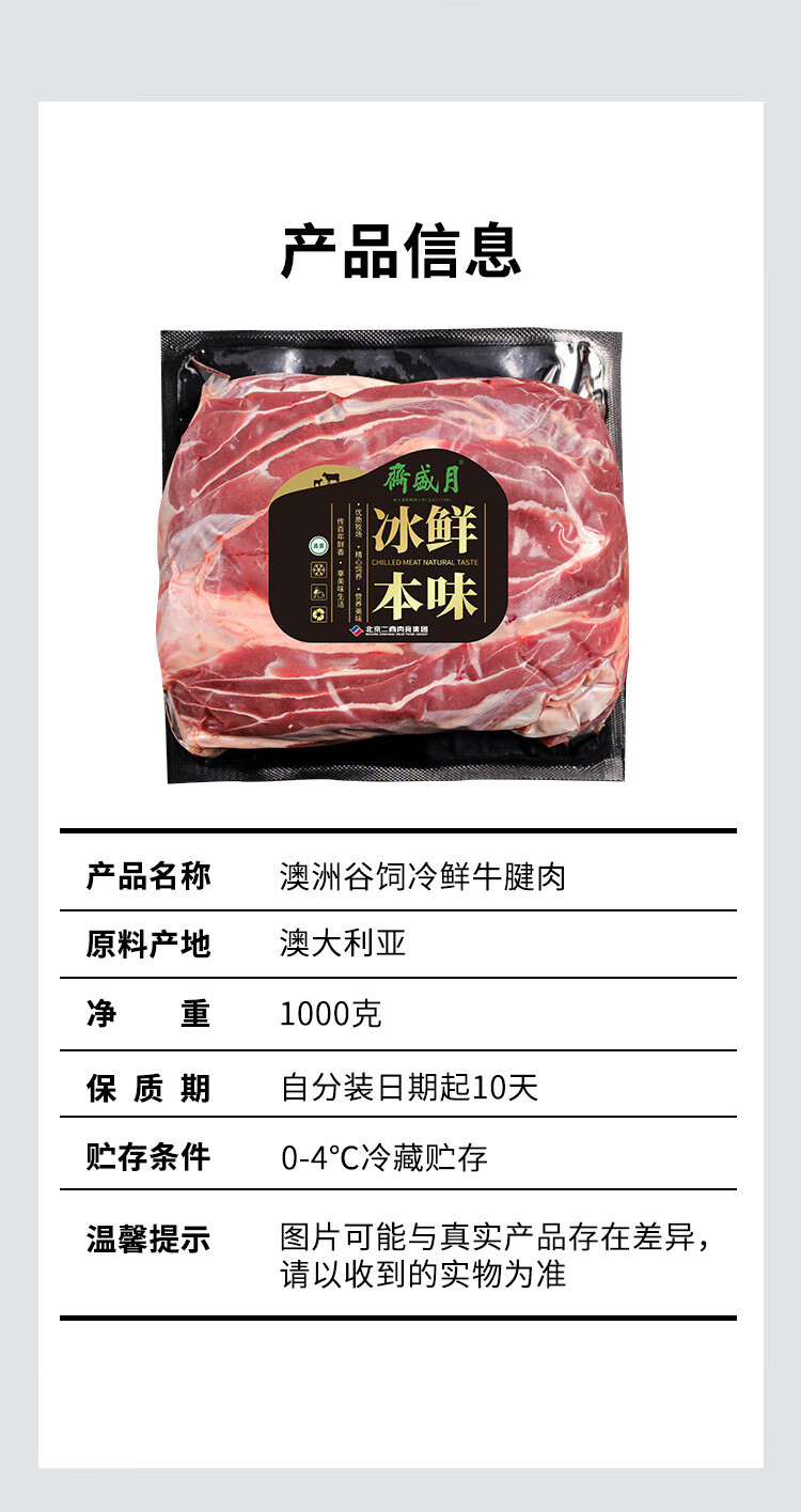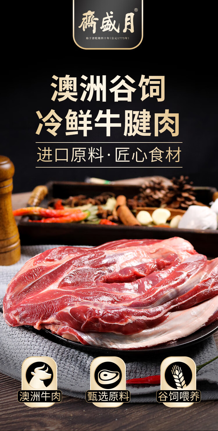 月盛斋 澳洲谷饲100天冷鲜牛腱肉1kg(带脂率约10% 生鲜 牛肉