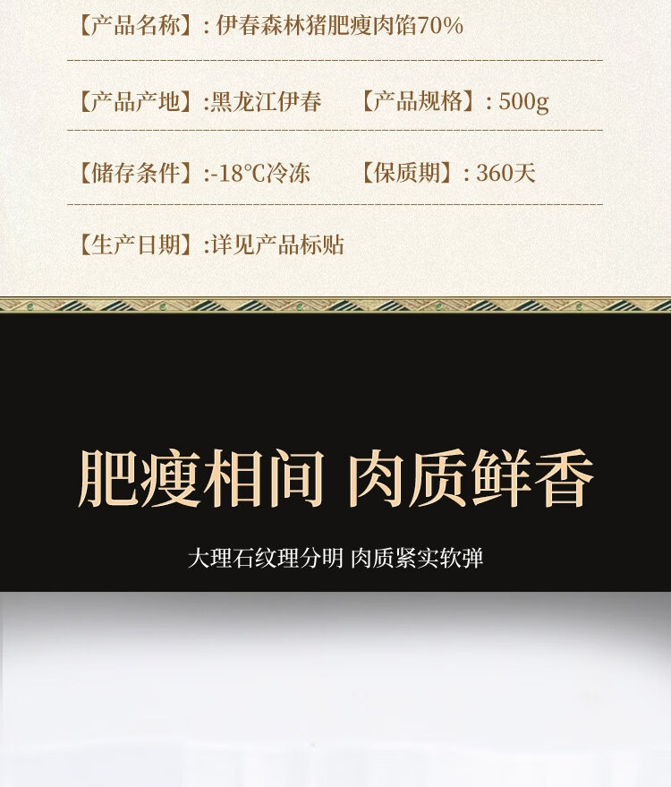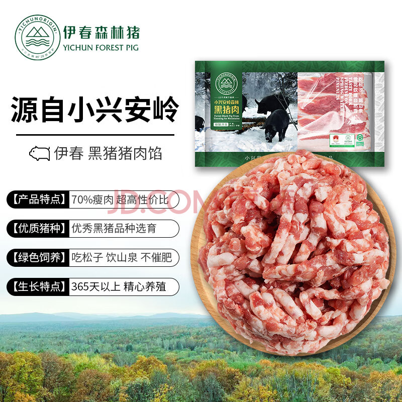 伊春森林猪 生鲜黑猪肉馅500g 绿色食品认证 约70%瘦肉 黑猪肉包子馅饺子馅