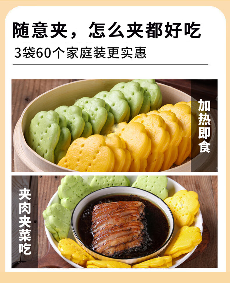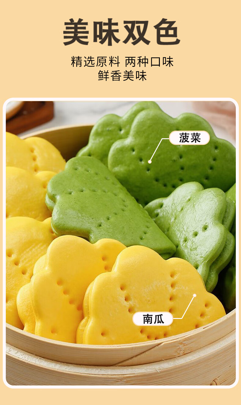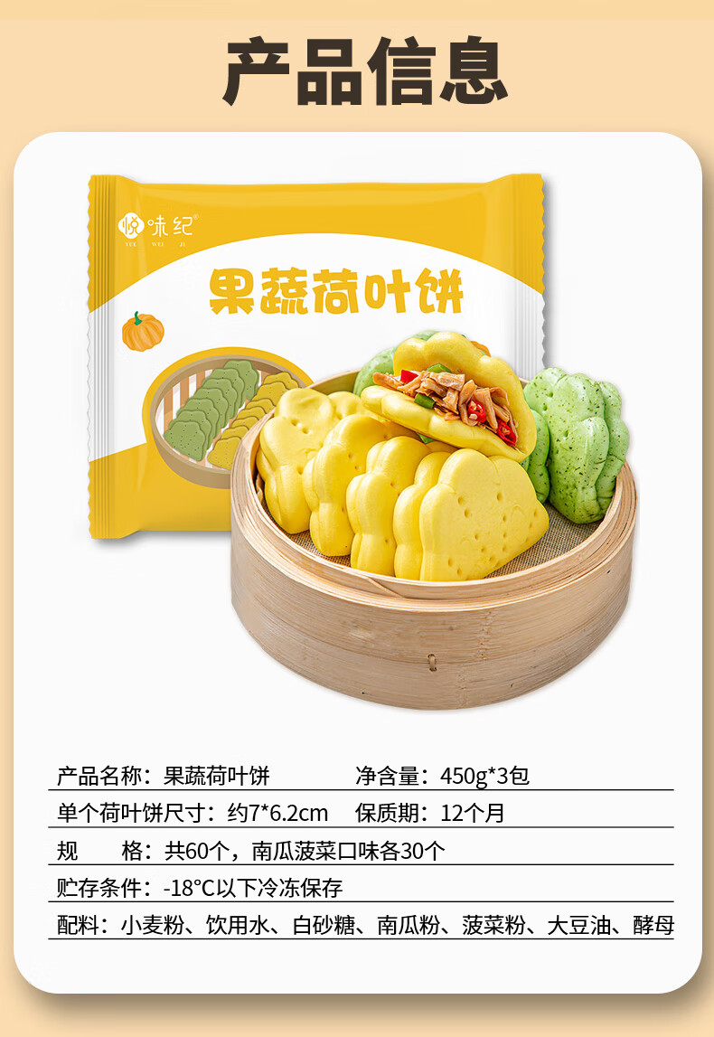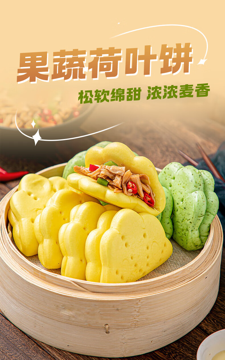 悦味纪 果蔬荷叶饼450g*3包 共60个 菠菜南瓜夹馍 卡通馒头儿童早餐
