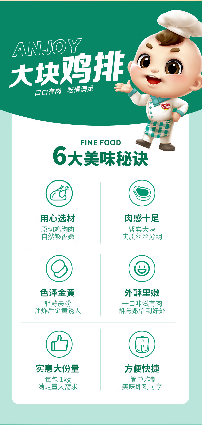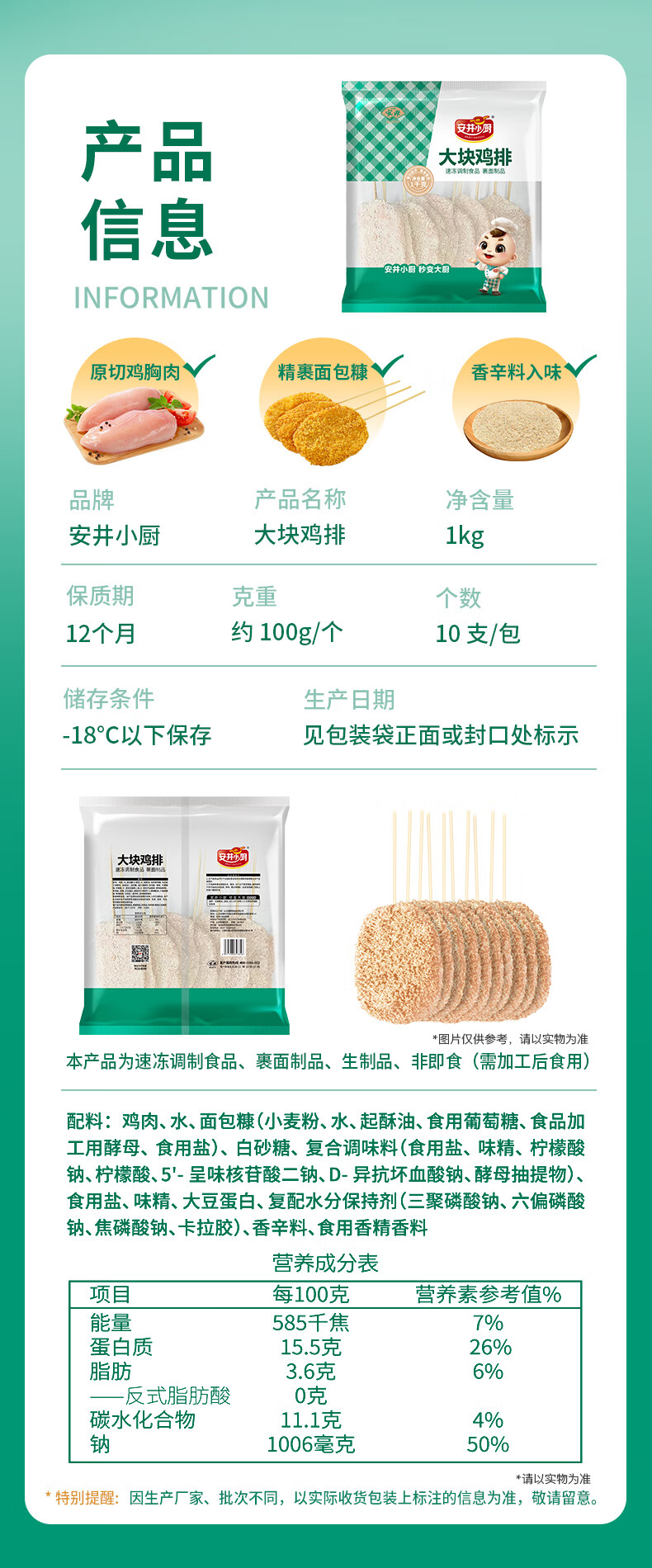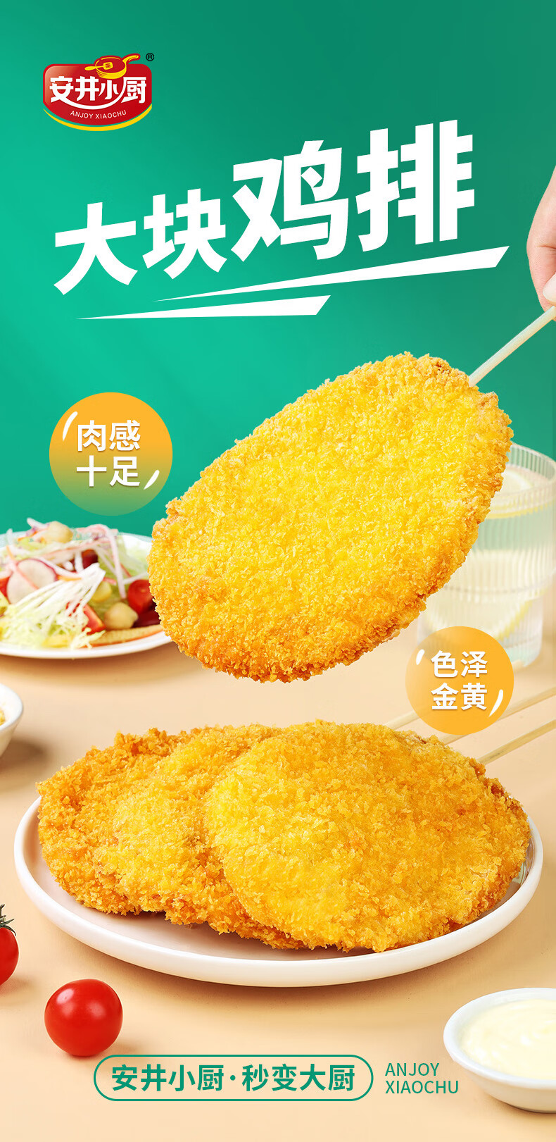 安井 大块鸡排 2斤装1kg 调理腌制冷冻鸡肉排 空气炸锅油炸小吃