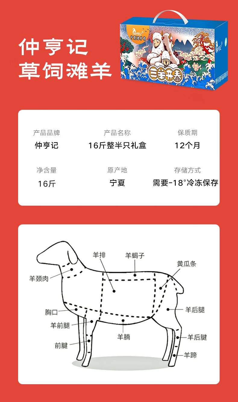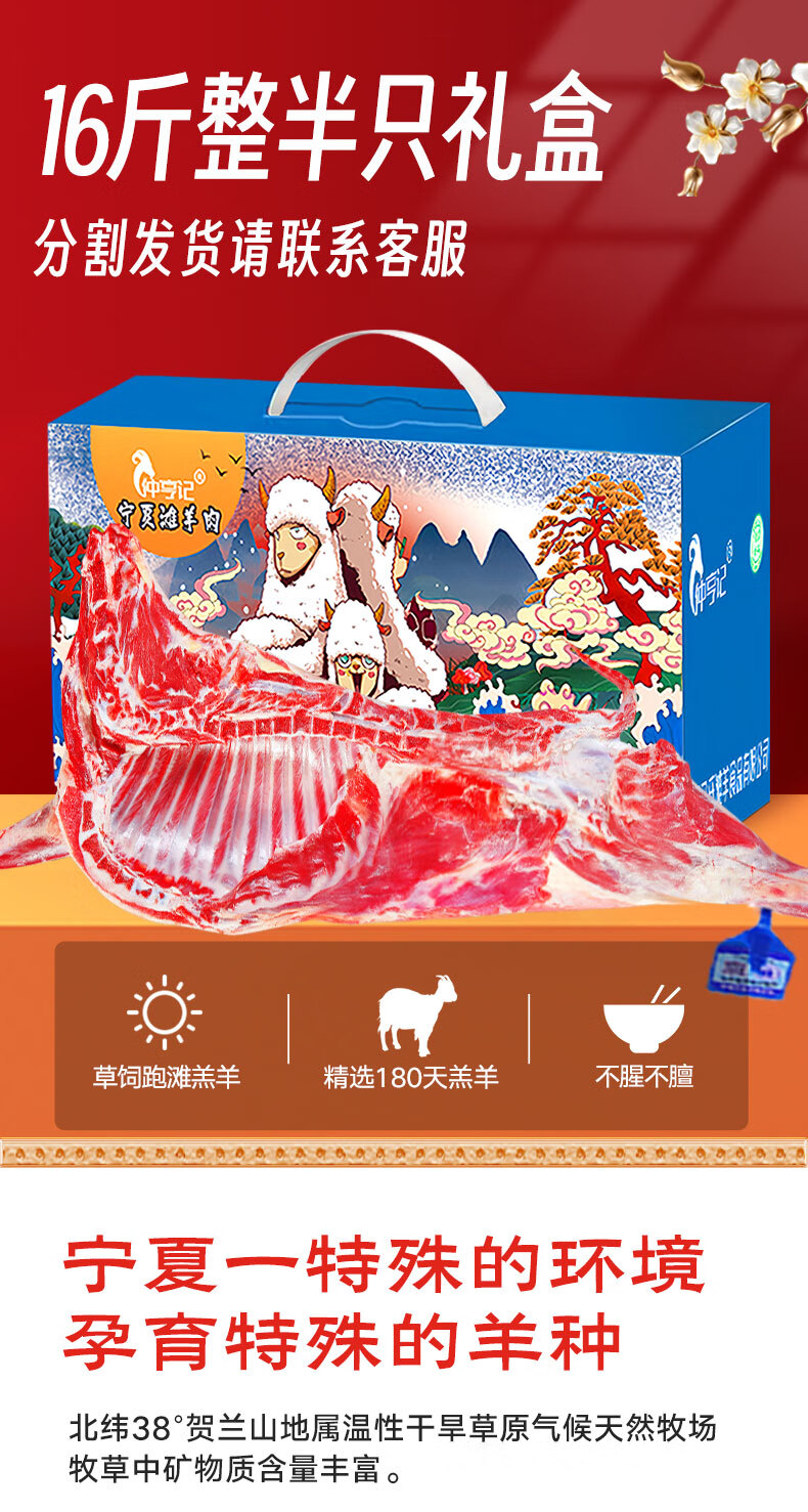 仲亨记羊腿羊排礼盒 16斤宁夏滩羊肉生鲜整半只新鲜现宰 源头直发包邮
