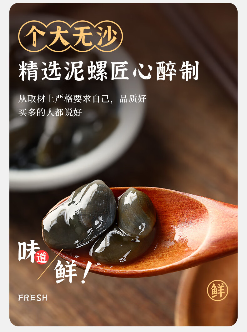 遇上鲜 泥螺即食罐装大黄泥螺生腌醉泥螺海鲜宁波舟山特产无沙200g