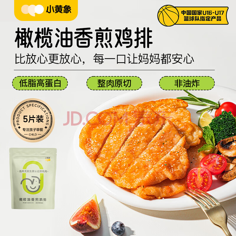 小黄象橄榄油香煎鸡排鸡胸肉速食高蛋白轻食主食鸡肉健身代餐500g(5片)