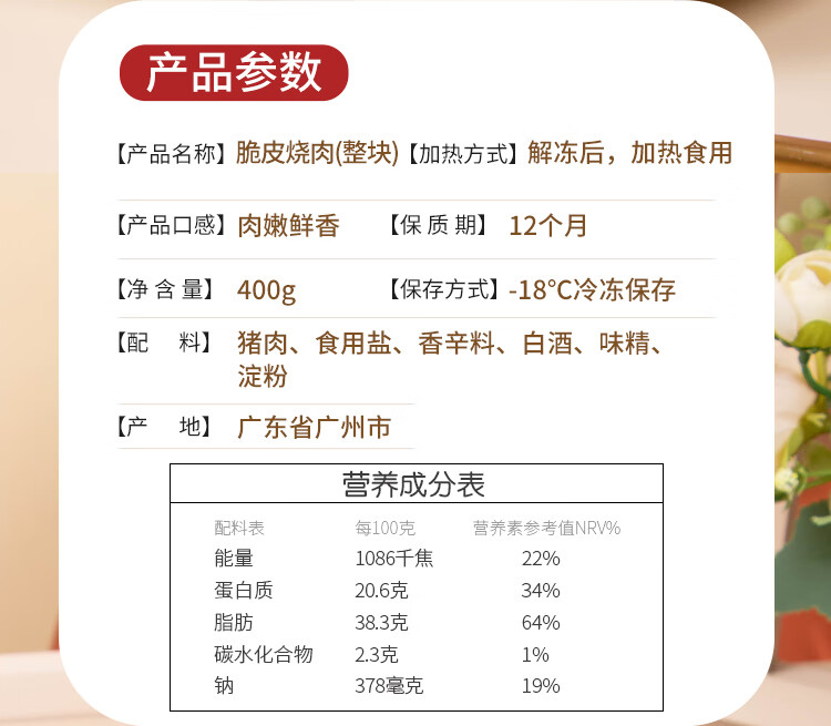 温氏 脆皮烧肉400g 广东特产广式烧腊粤菜半成品 原味 烤肉方便菜