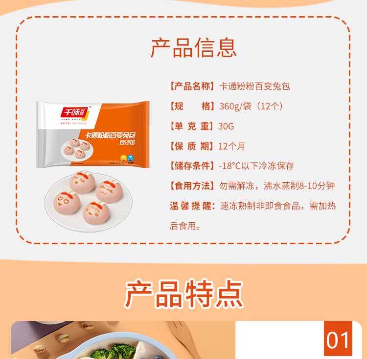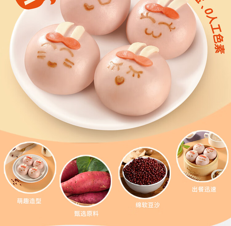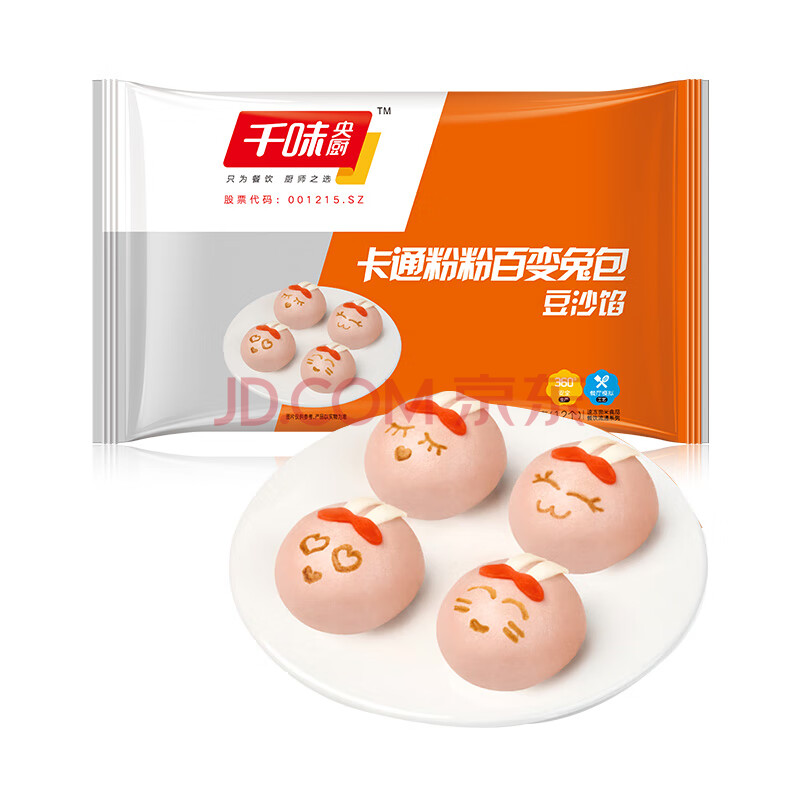 千味央厨 卡通粉粉百变兔包 豆沙馅 360g(每袋12个) 卡通包 早餐包