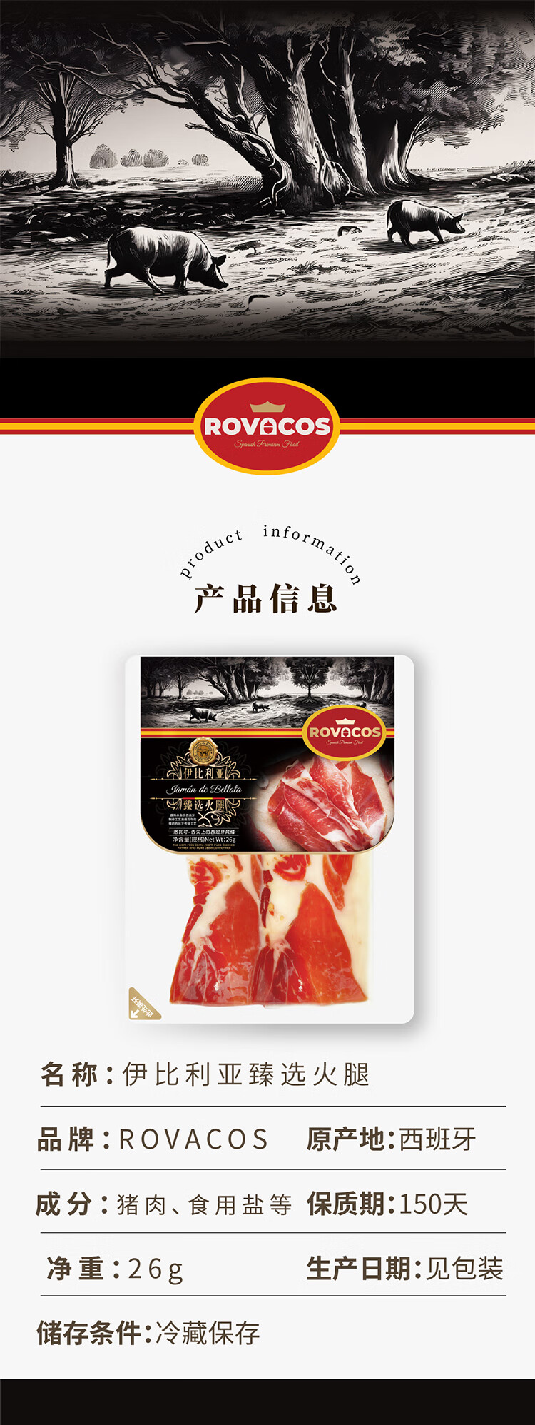 ROVACOS西班牙火腿伊比利亚火腿切片即食黑猪后腿西班牙黑标臻选火腿26g