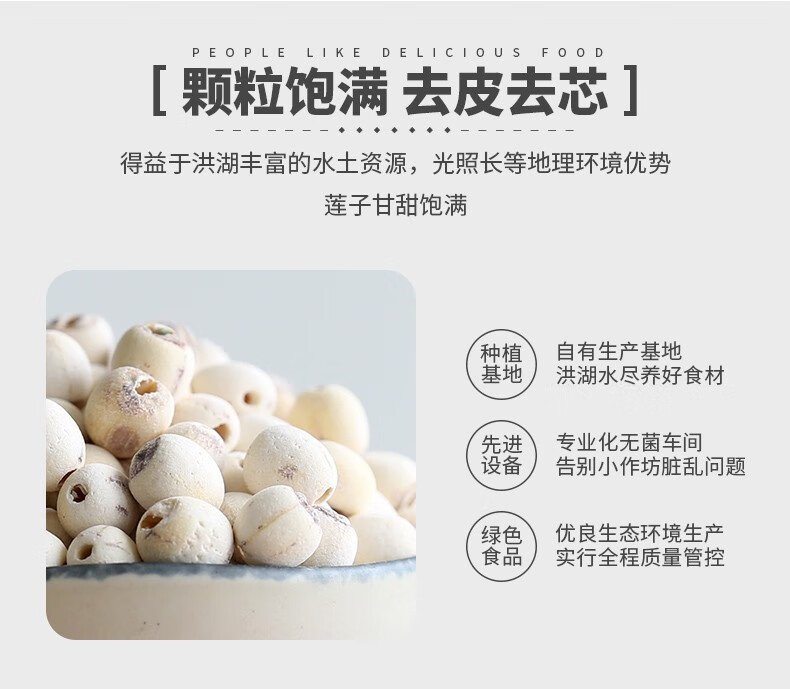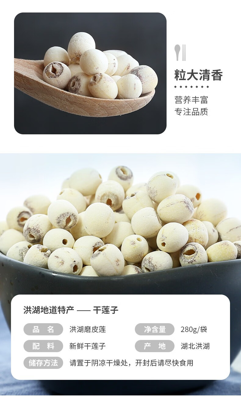 华贵 磨皮莲子280g袋 去芯白莲 洪湖特产干货莲子 煲汤食材 湖北特产