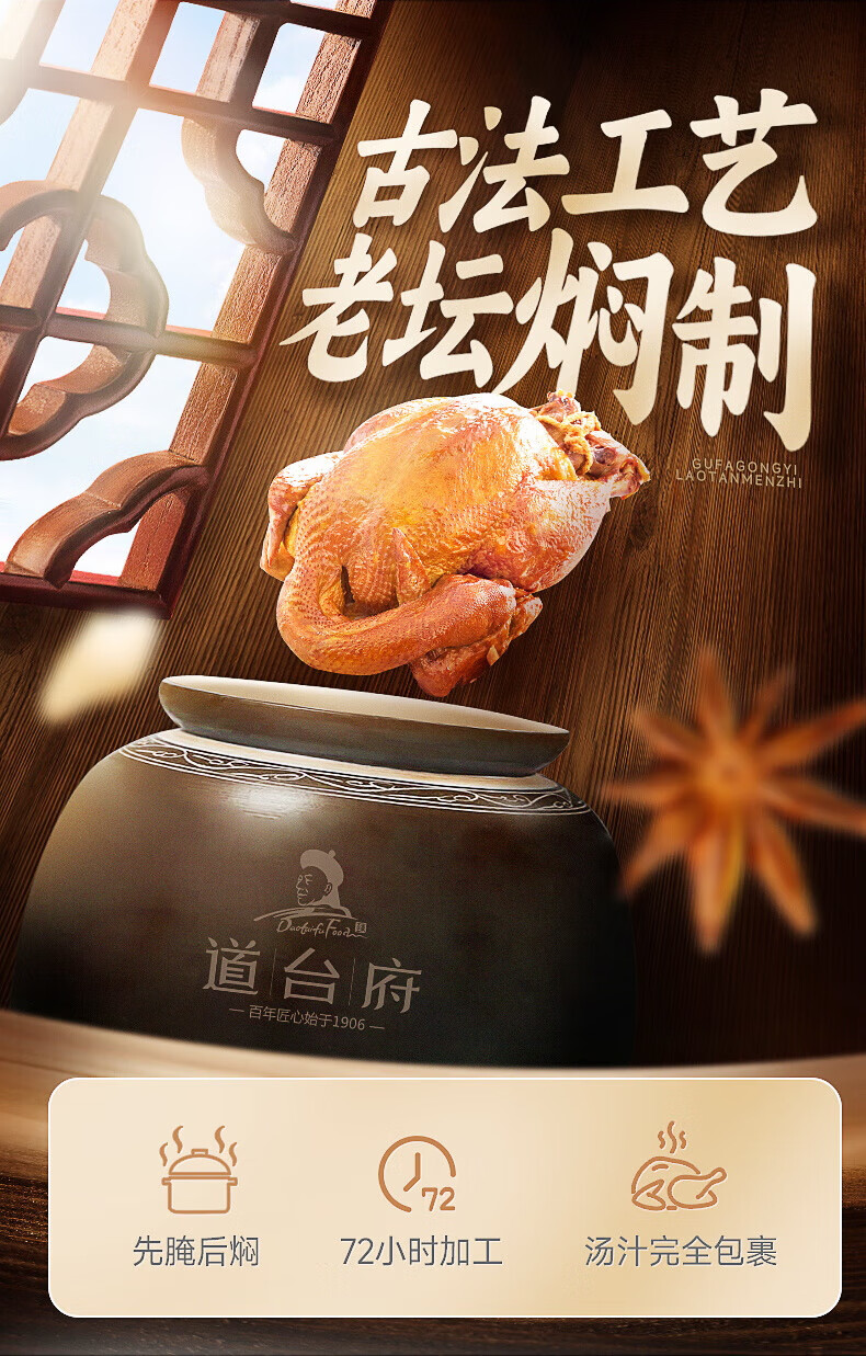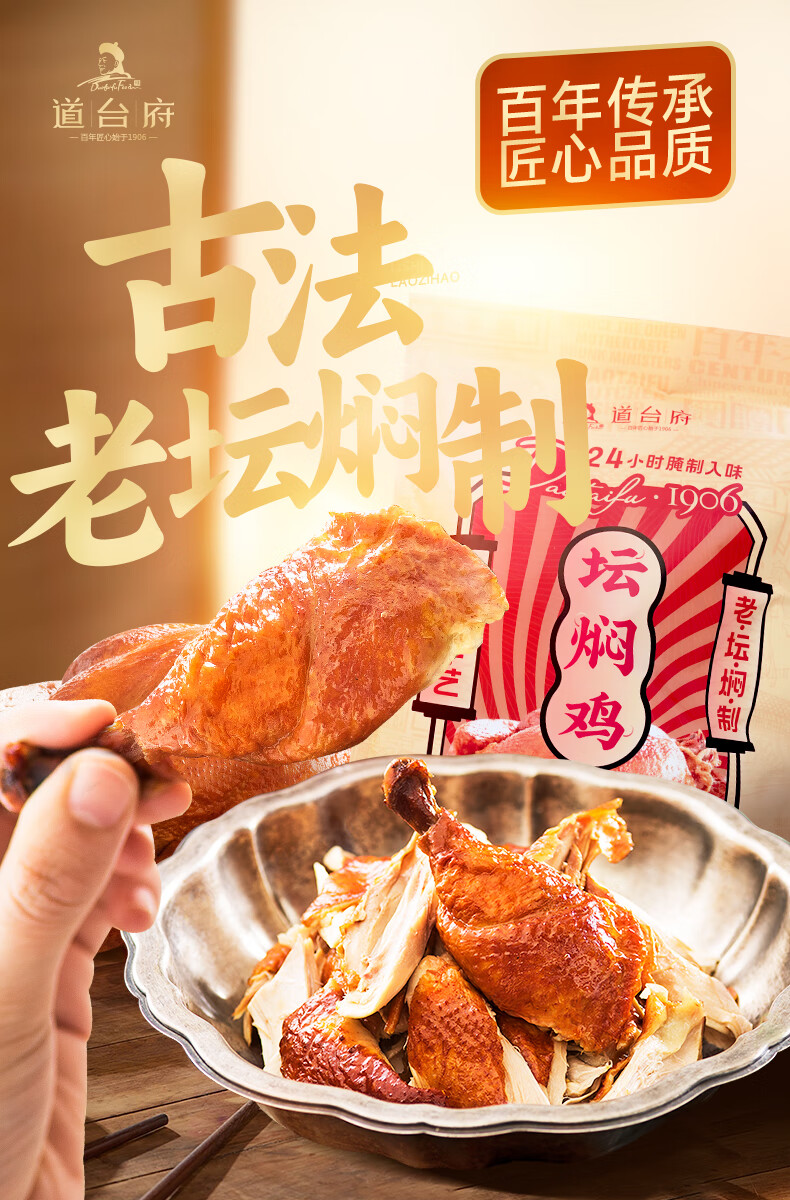 道台府 坛焖鸡烧鸡450g 东北特产哈尔滨风味 熟食腊味卤味烧鸡 开袋即食