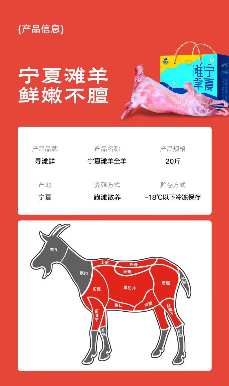 寻滩鲜 宁夏滩羊肉 国产整只羊 20斤 原切全羊清真 年货礼盒 源头直发
