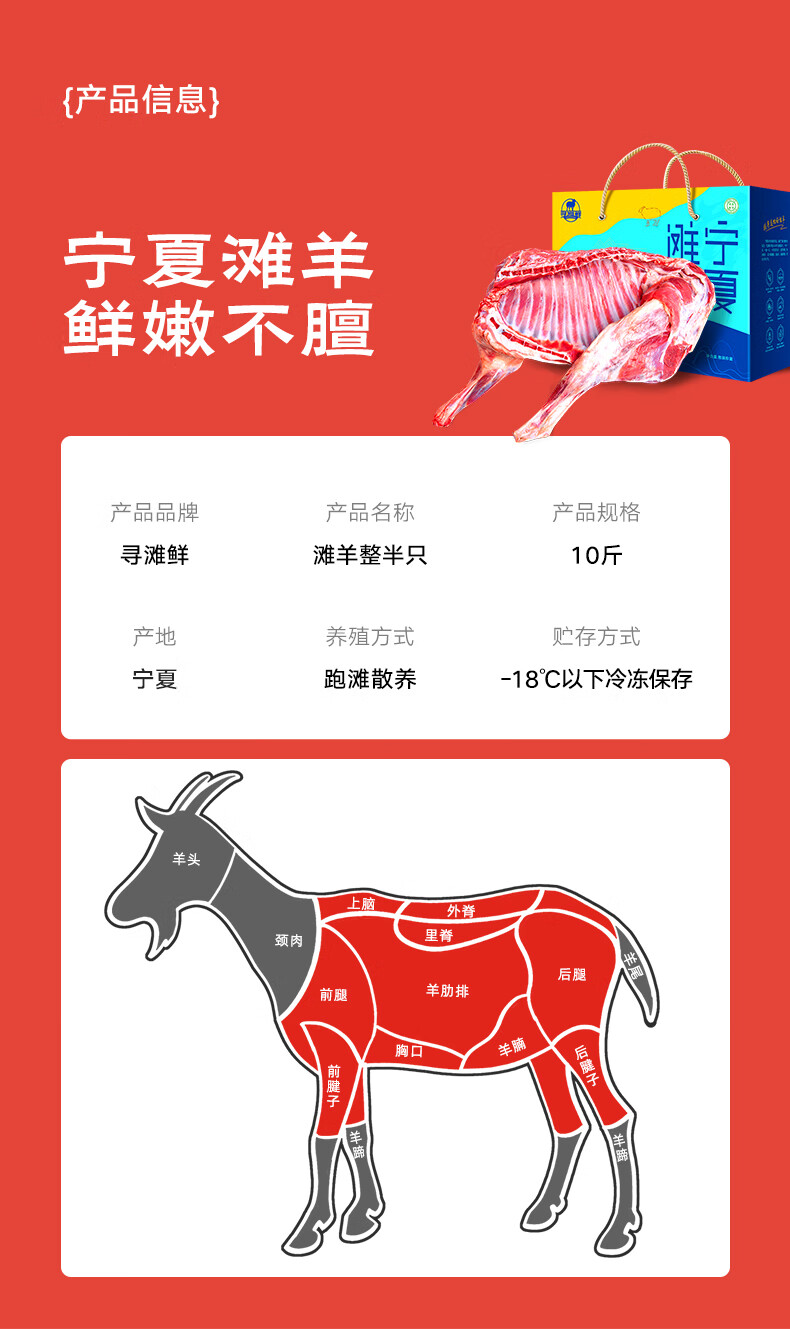 寻滩鲜宁夏滩羊肉 整半只羊10斤 中秋礼盒 生鲜羊肉 清真食材 源头直发