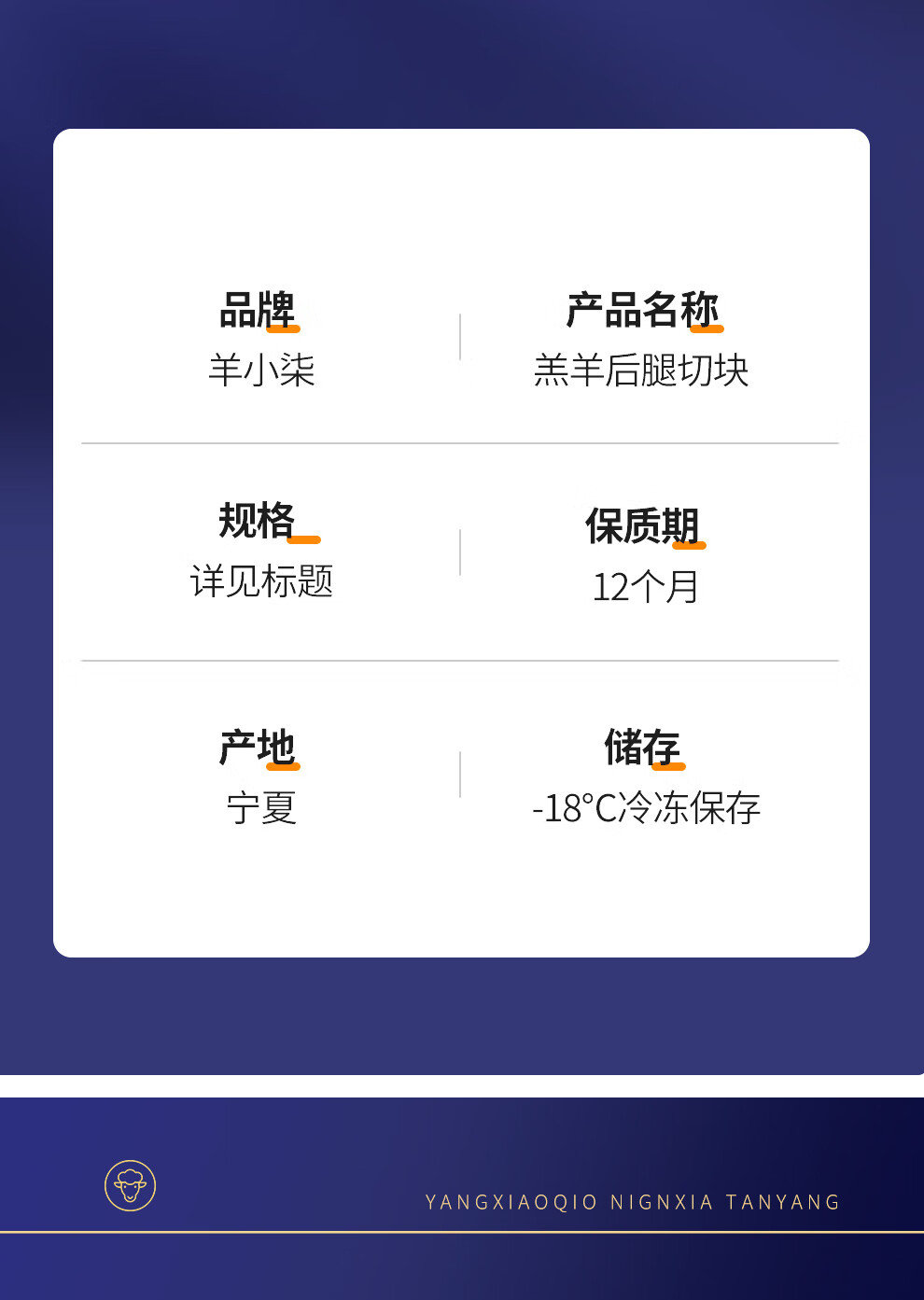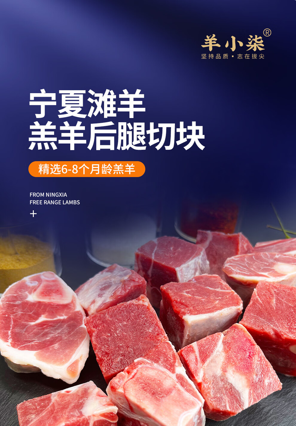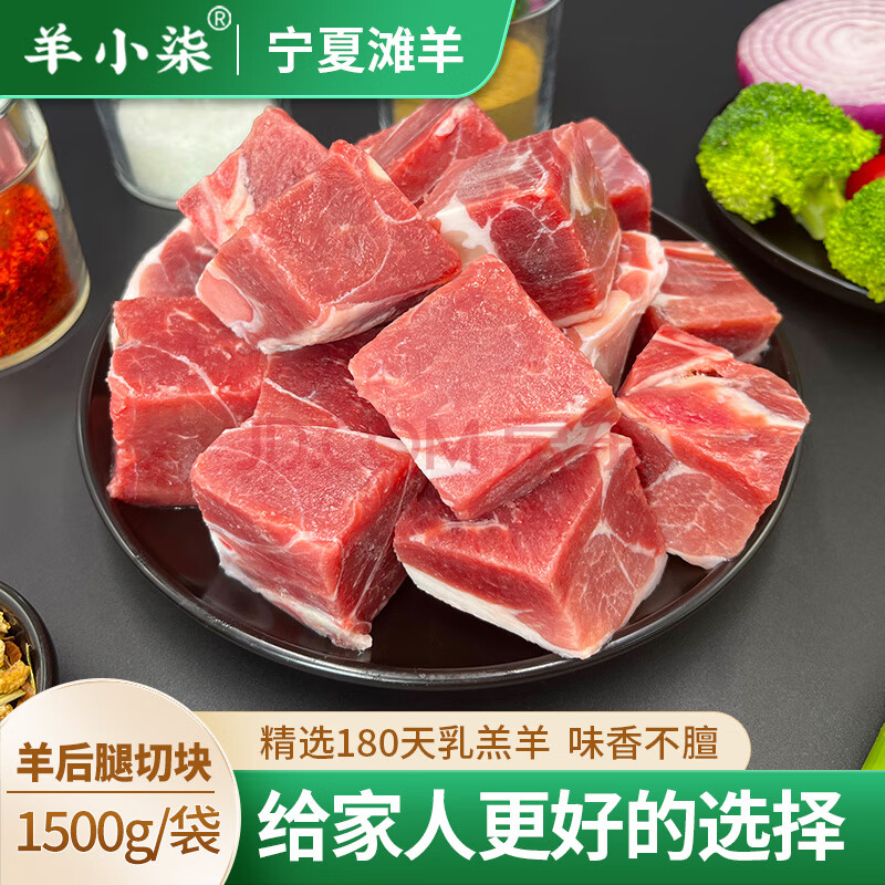 羊小柒宁夏滩羊肉 带骨后腿肉切块1500g/袋 生鲜原切羔羊 烧烤火锅食材
