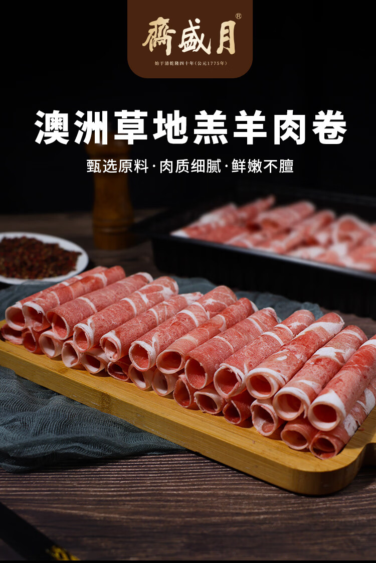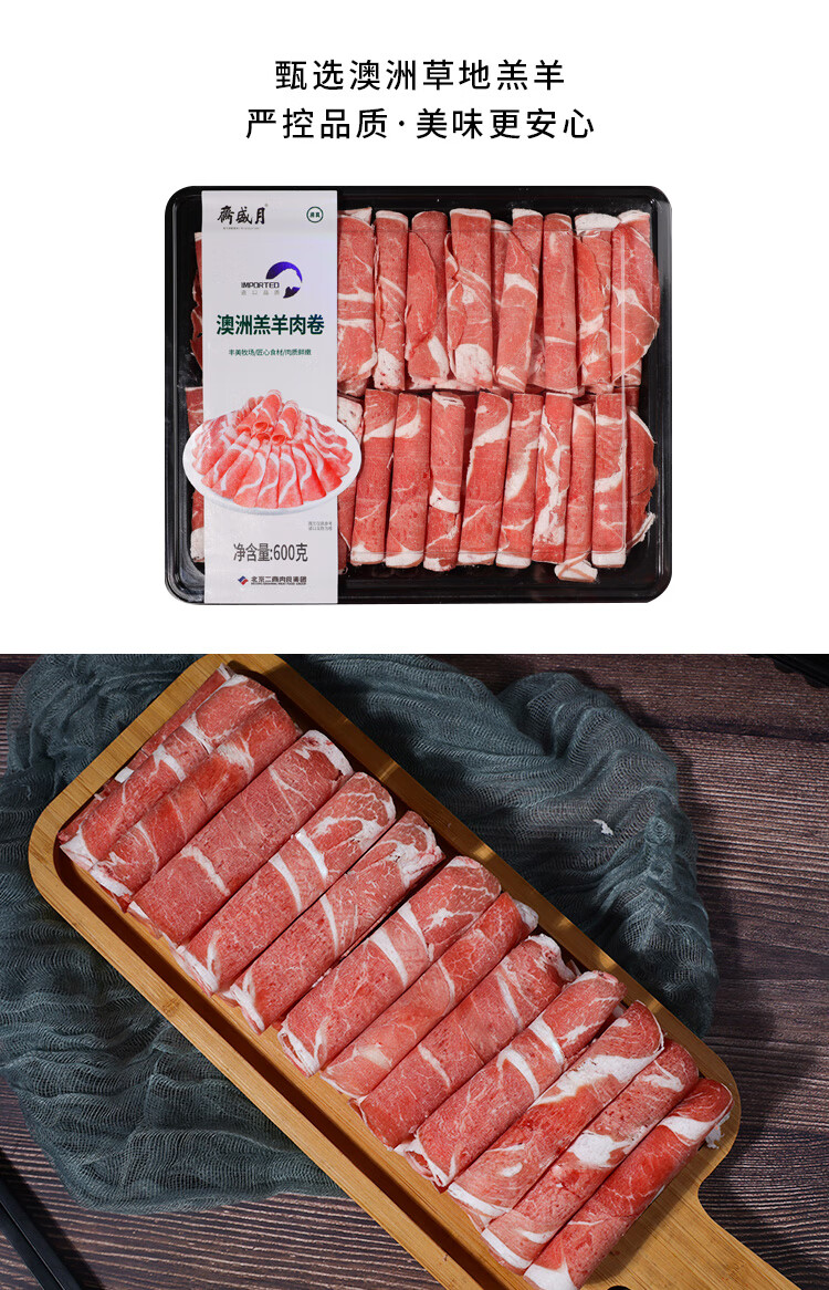 月盛斋进口澳洲原切 草地羔羊肉卷600g 冷冻羊肉片 火锅 涮羊肉