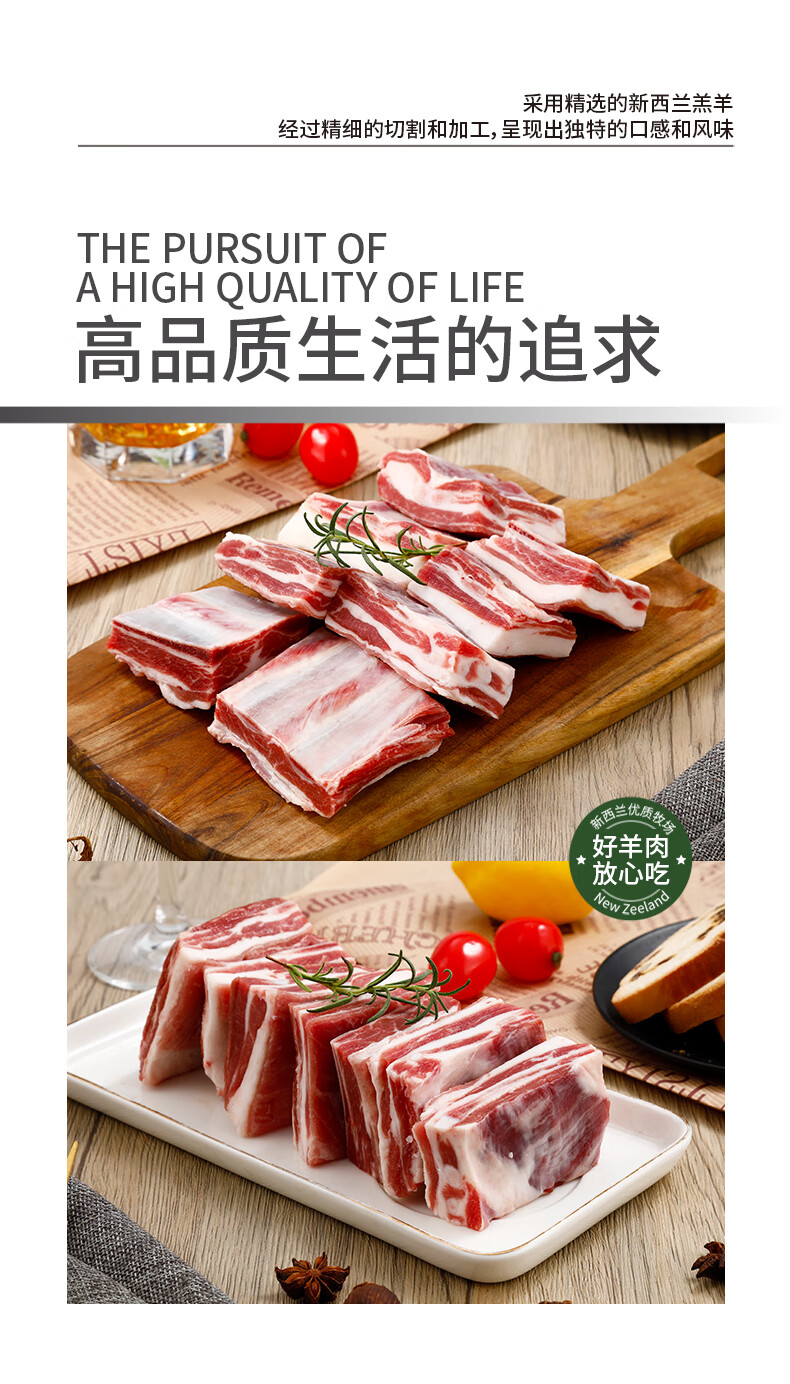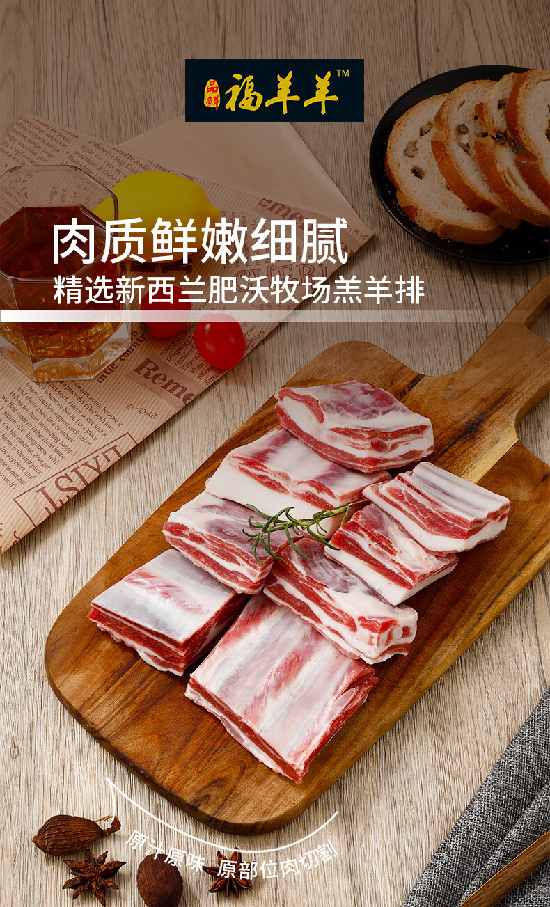 品鲜福羊羊新西兰原切羊排块1Kg 进口羔羊肉 火锅食材炒煮烤涮锅皆宜羊排