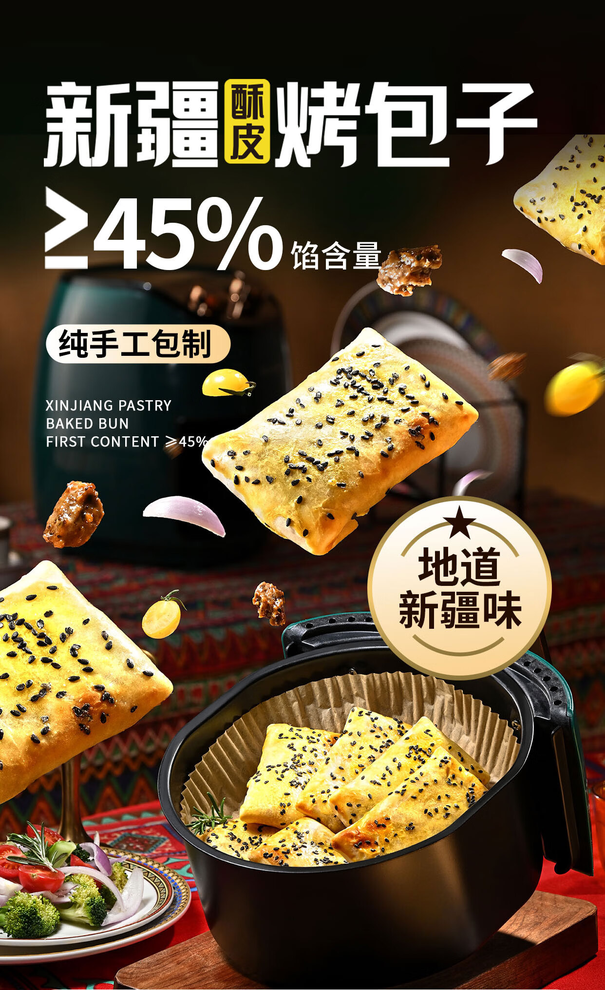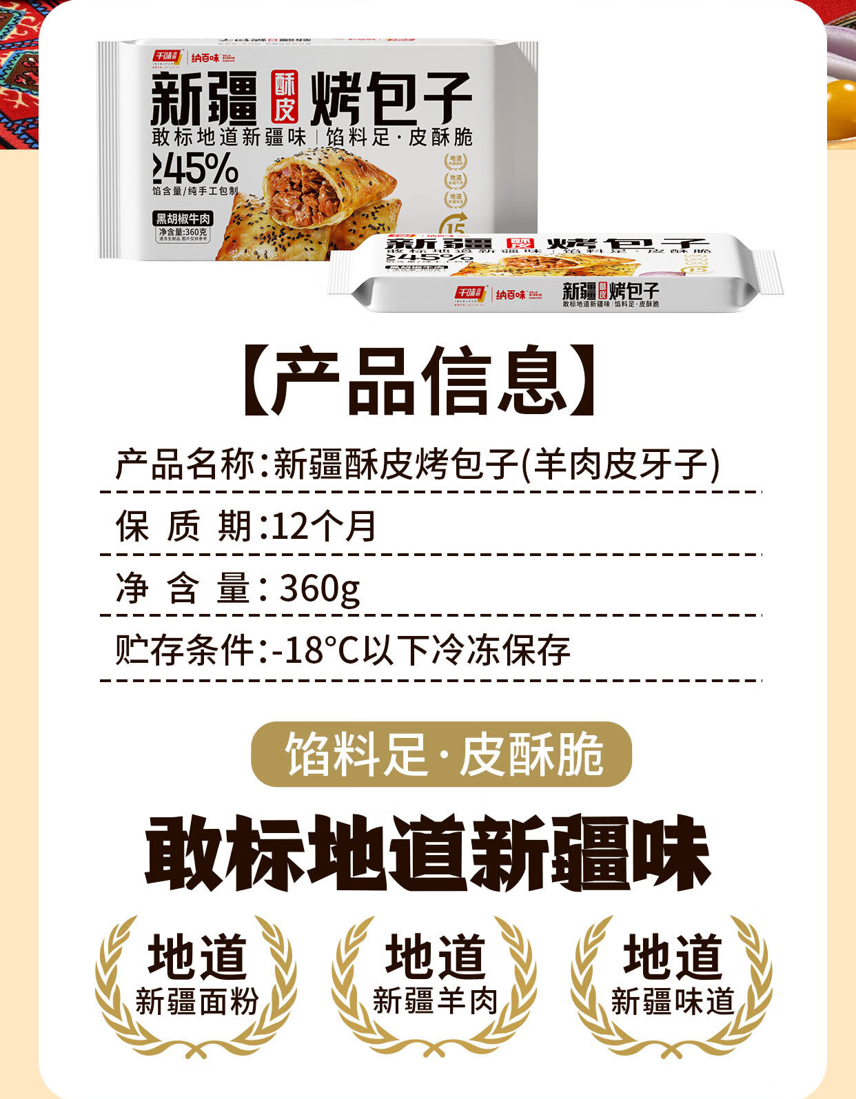 千味解忧炸货铺新疆烤包子360g 6只装 孜然羊肉 方便食品 早餐速食