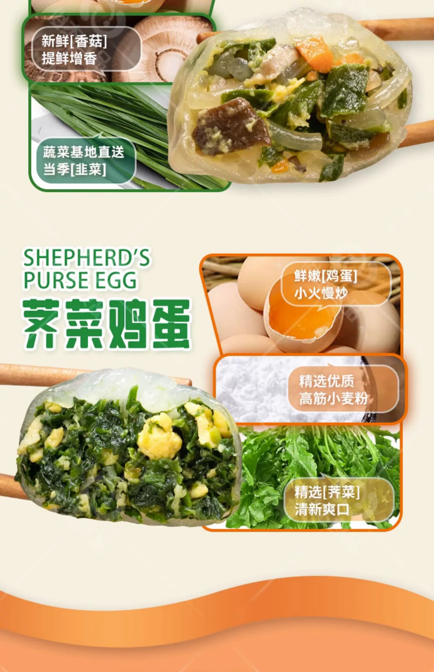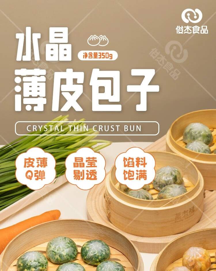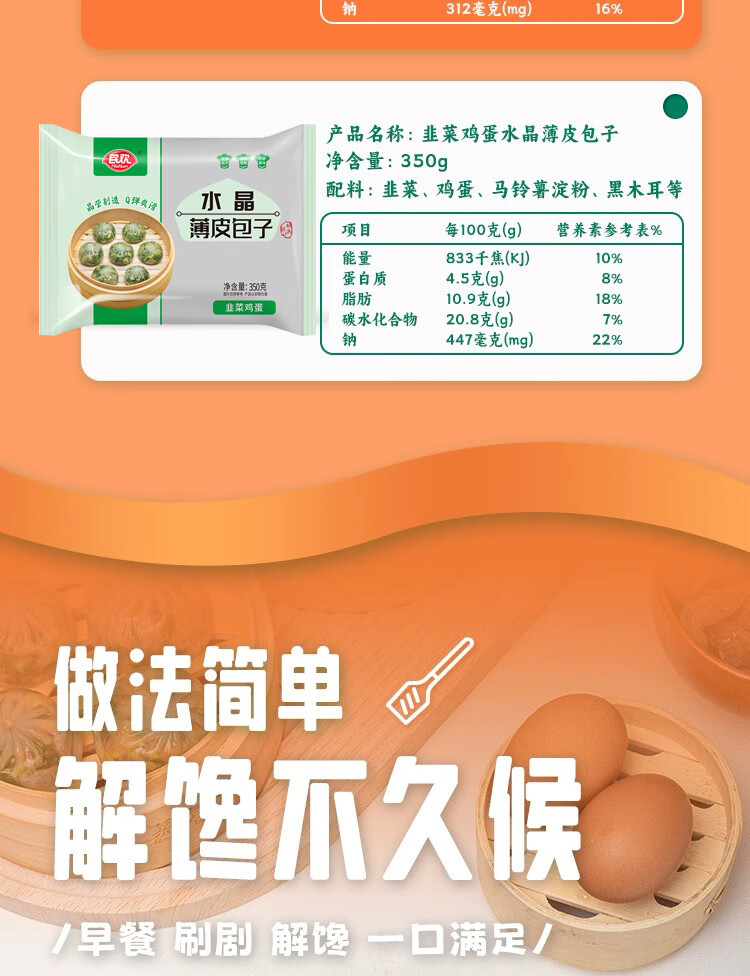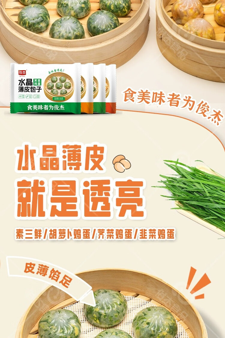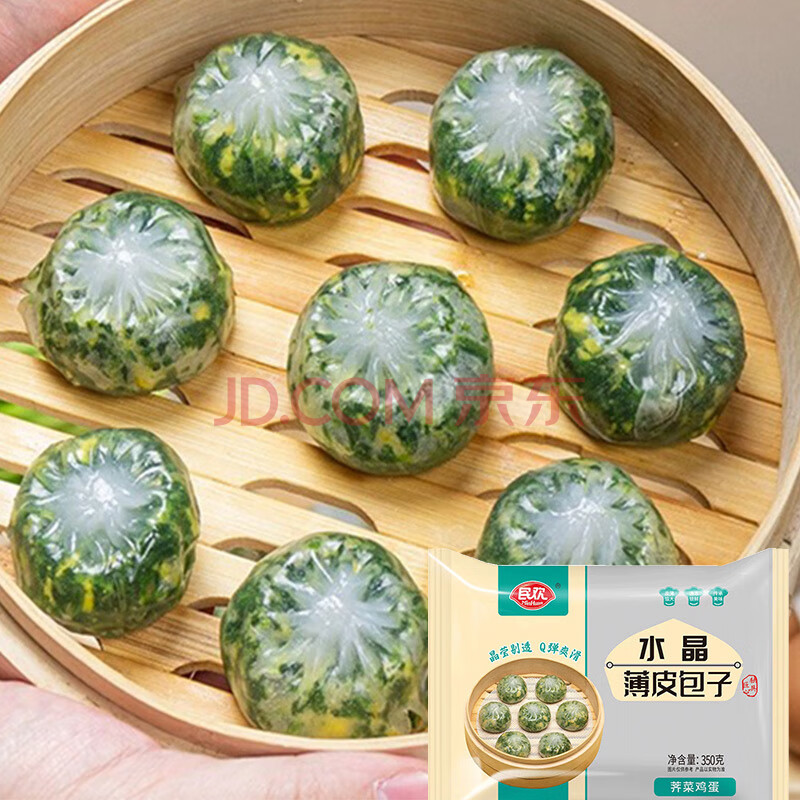 民欢荠菜鸡蛋水晶薄皮包子 350g/包 约10只 素馅小笼包早餐面食