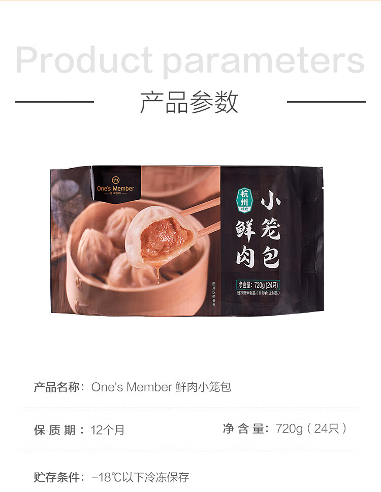 1号会员店 鲜肉小笼包 杭州特色早餐点心 720g