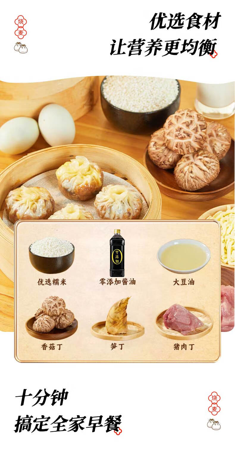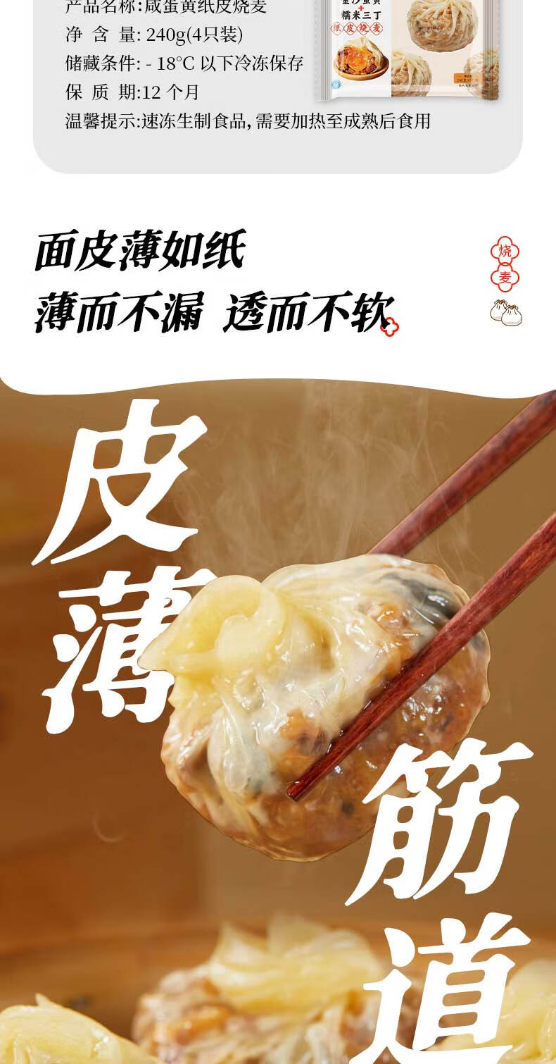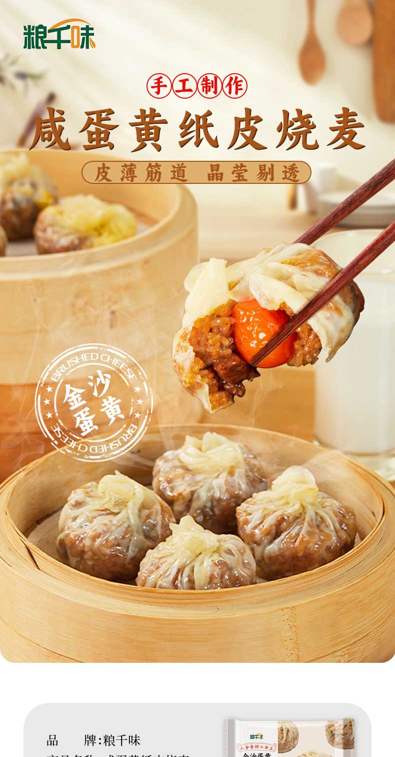 粮千味 咸蛋黄糯米纸皮烧麦 纯手工烧卖 面点生鲜 微波速食早餐240g*1袋
