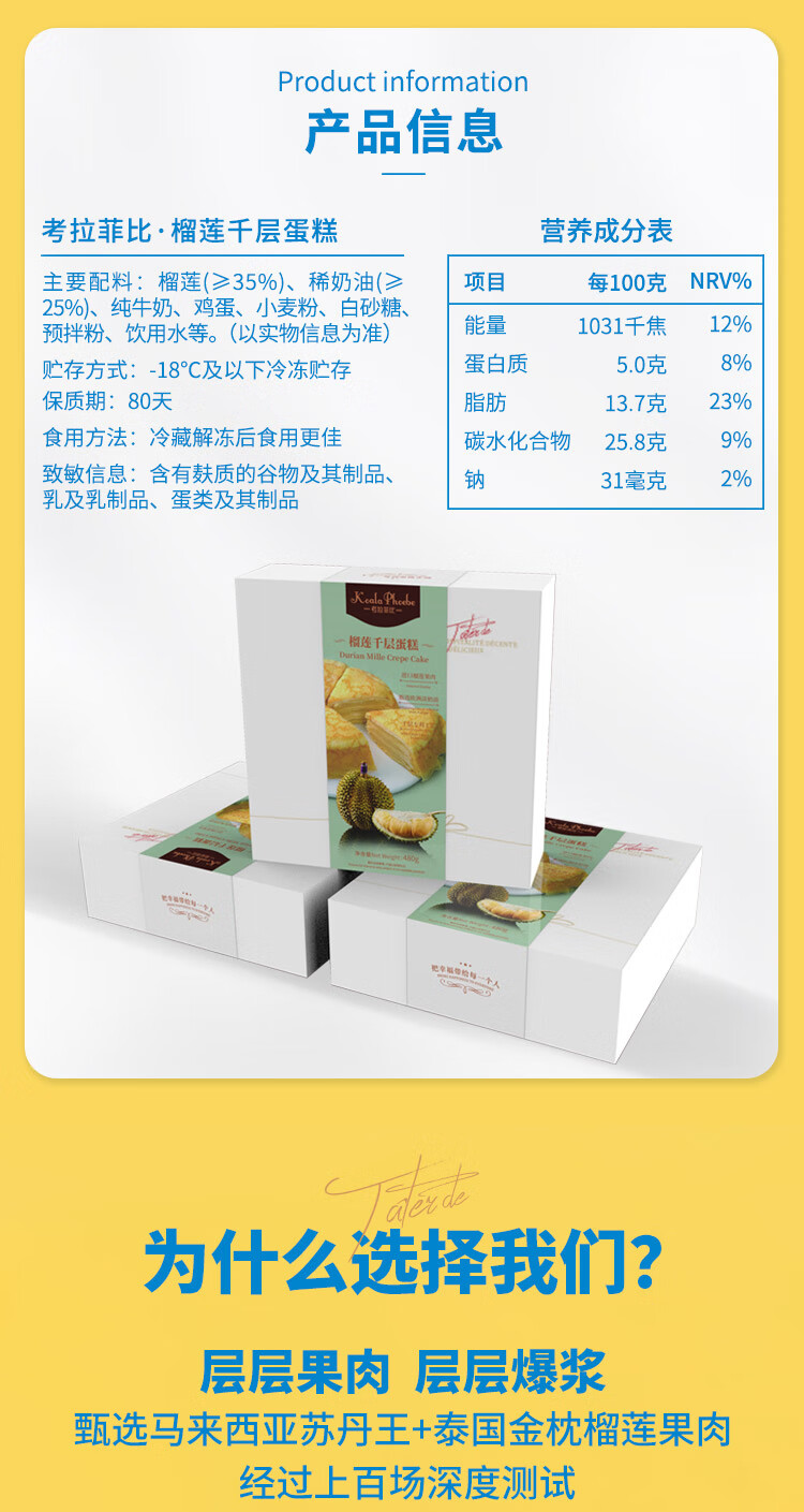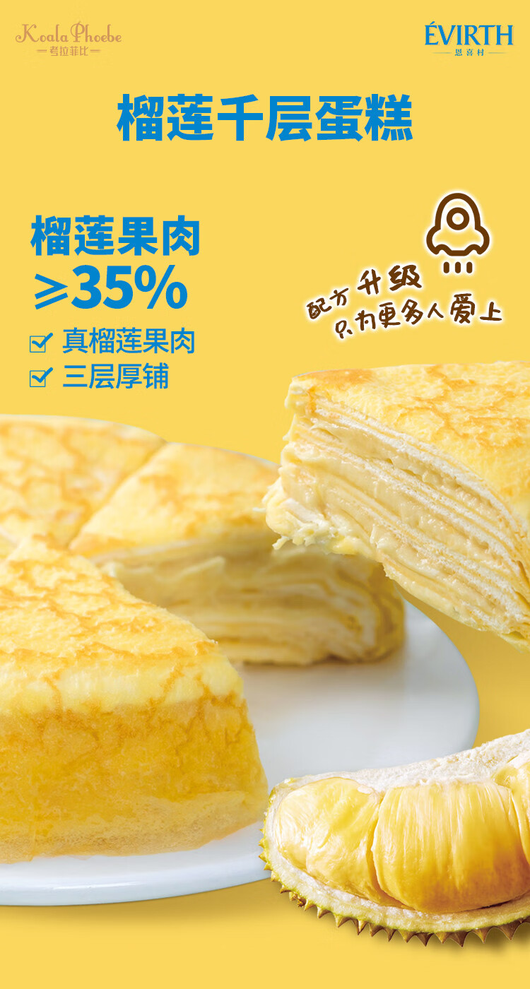 考拉菲比(koala Phoebe)榴莲千层蛋糕 恩喜村进口苏丹王金枕榴莲6寸动物奶油生日蛋糕480g