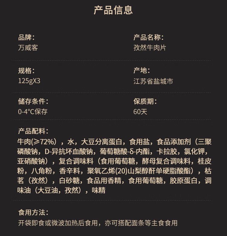 万威客帕斯雀牛肉片 孜然 125g*3熟食火腿片午餐肉早餐三明治切片