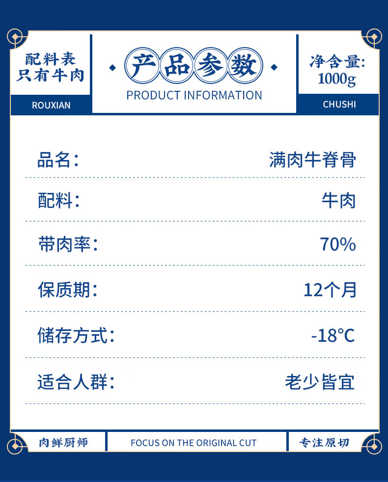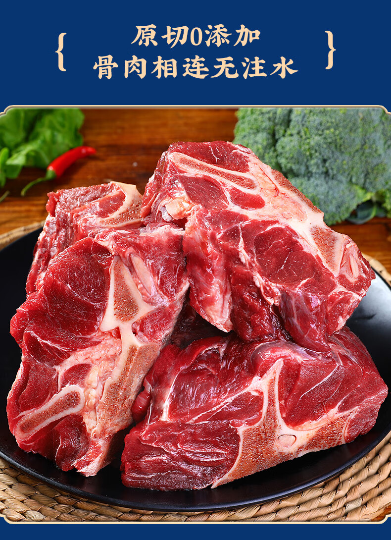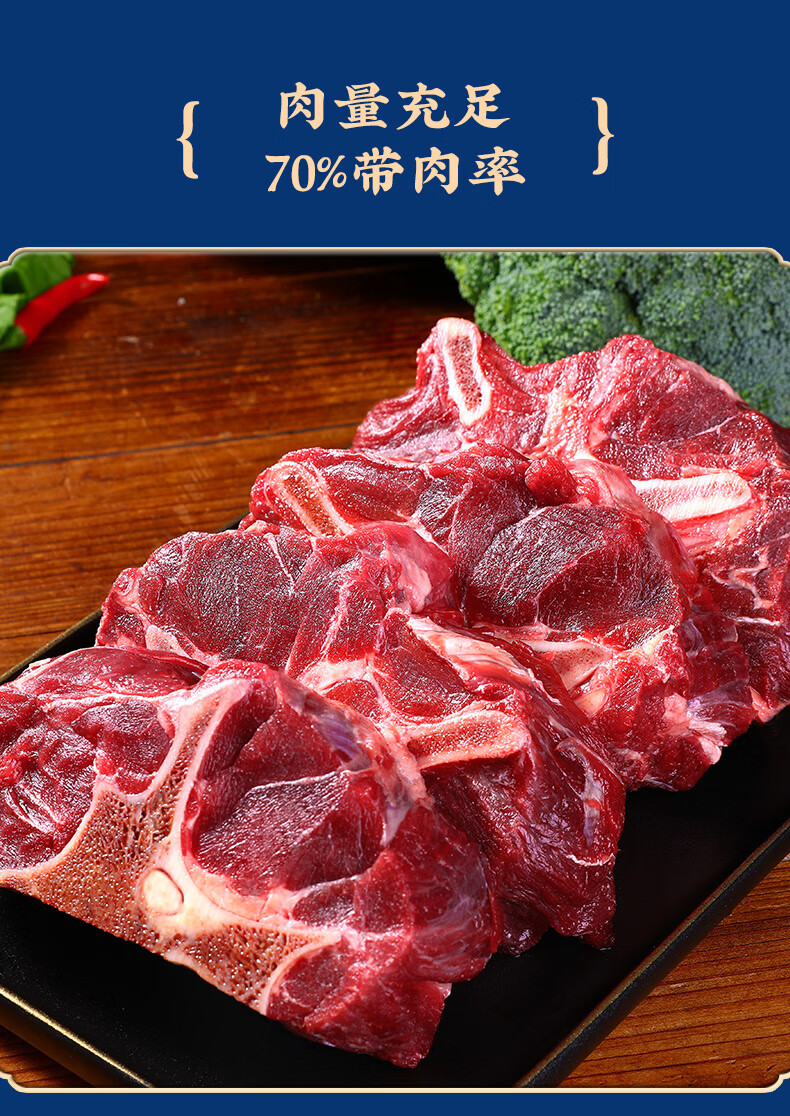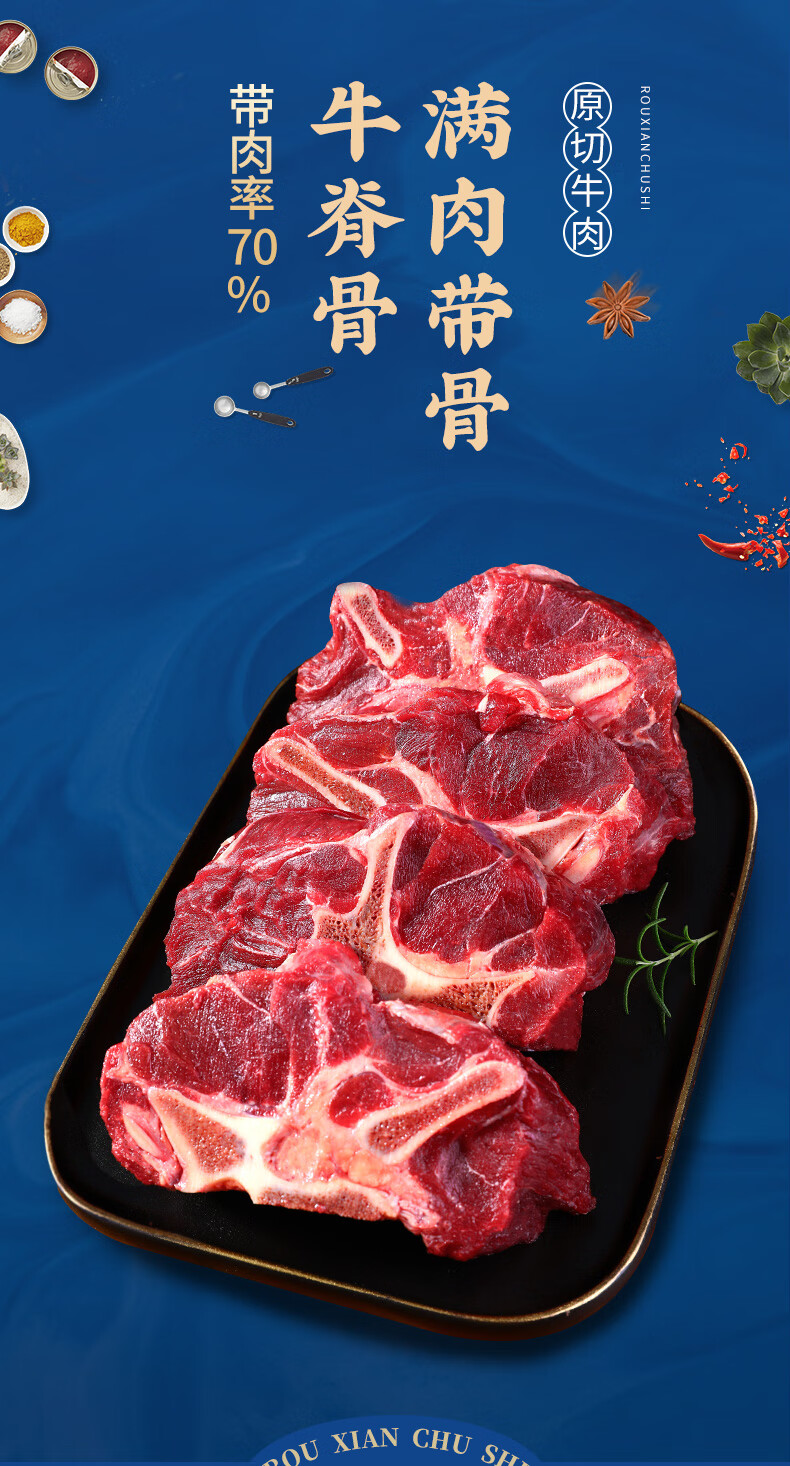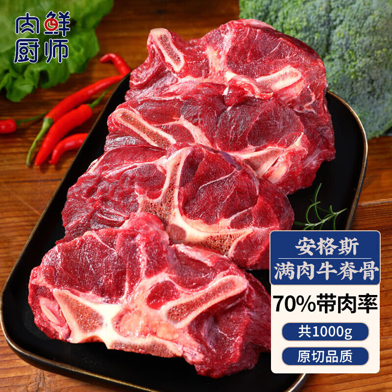 肉鲜厨师 满肉牛脊骨1kg原切(70%带肉) 牛脖骨蝎子新鲜冷冻龙骨煲汤食材