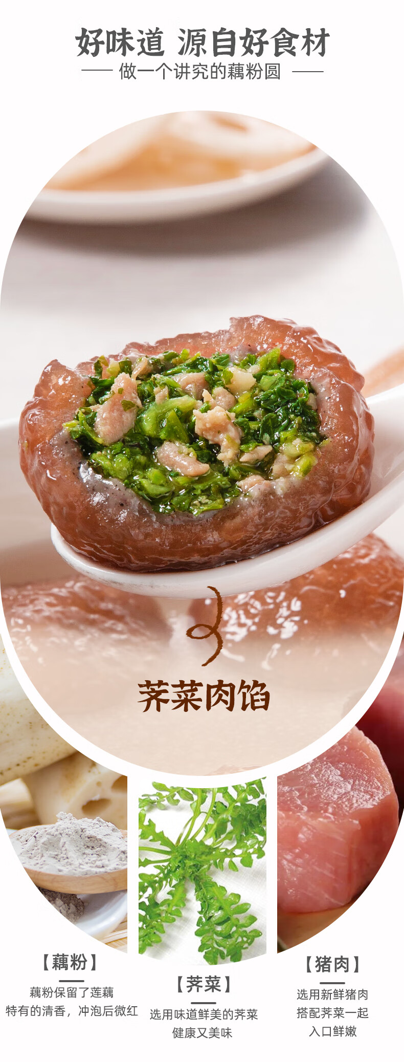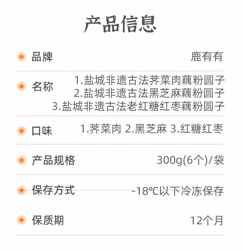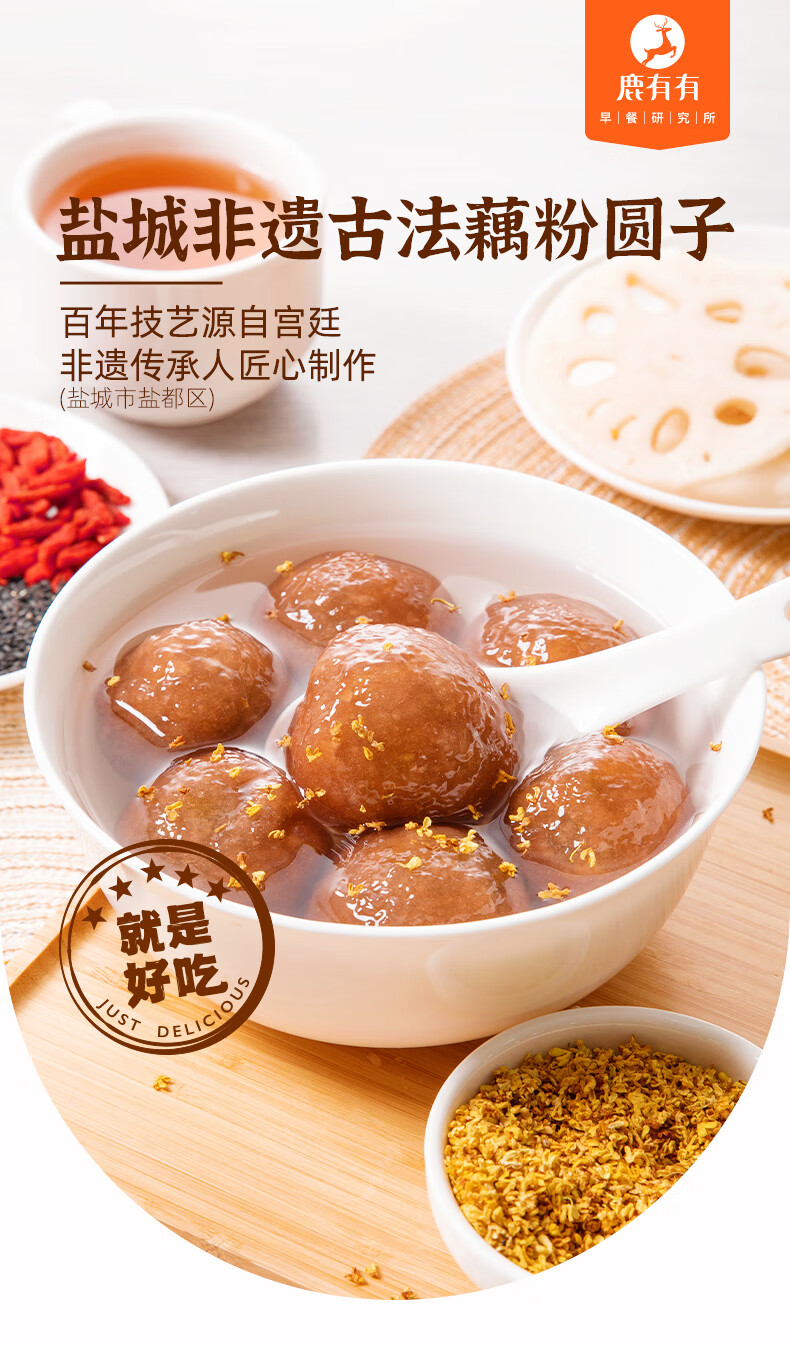鹿有有荠菜肉藕粉圆子盐城莲藕粉大汤圆300g*1袋(共6个)