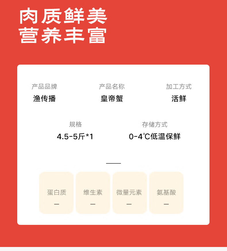 【活鲜】渔传播 同城速配 鲜活澳洲皇帝蟹4.5-5斤 螃蟹海鲜生鲜