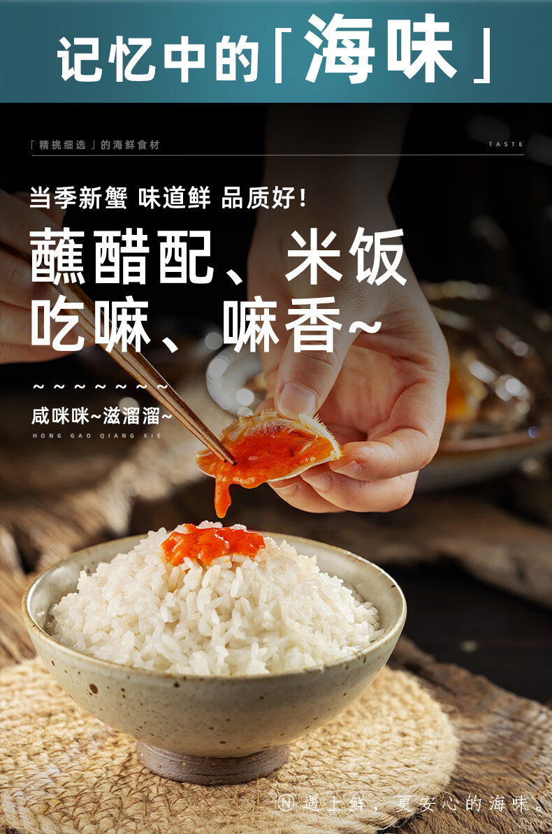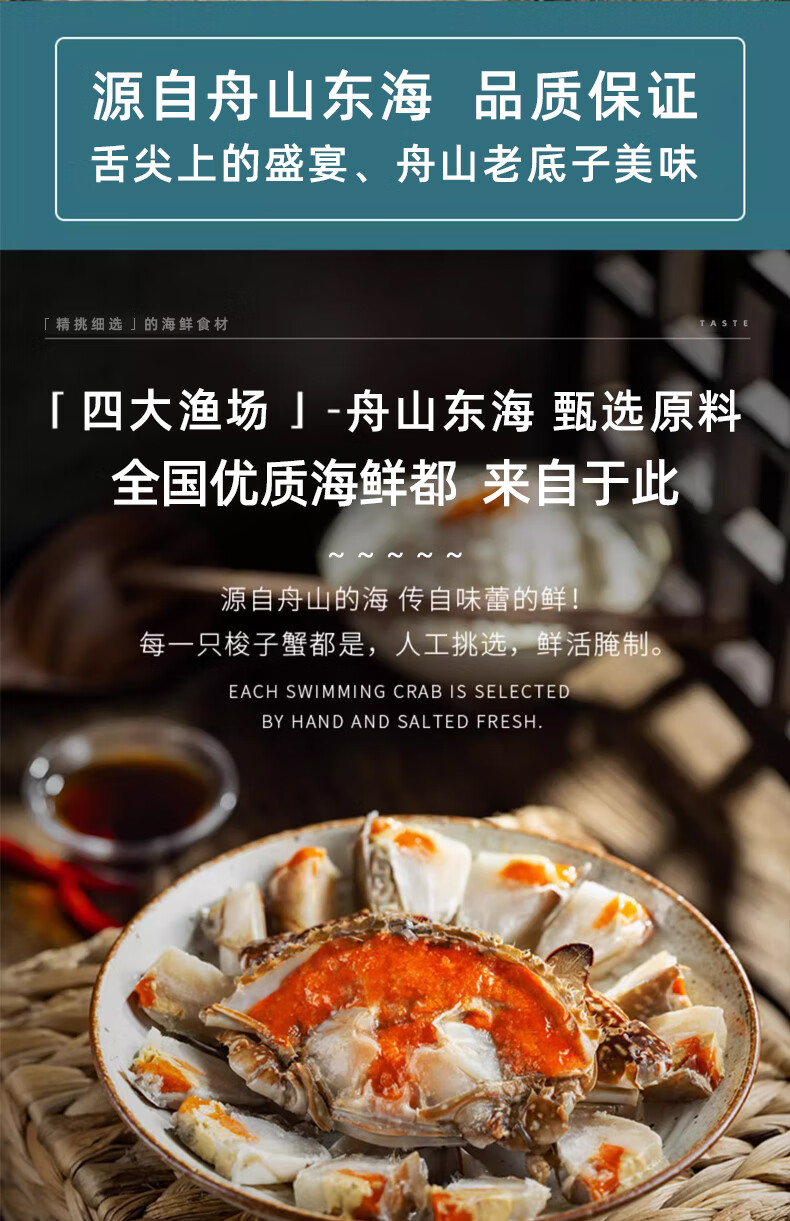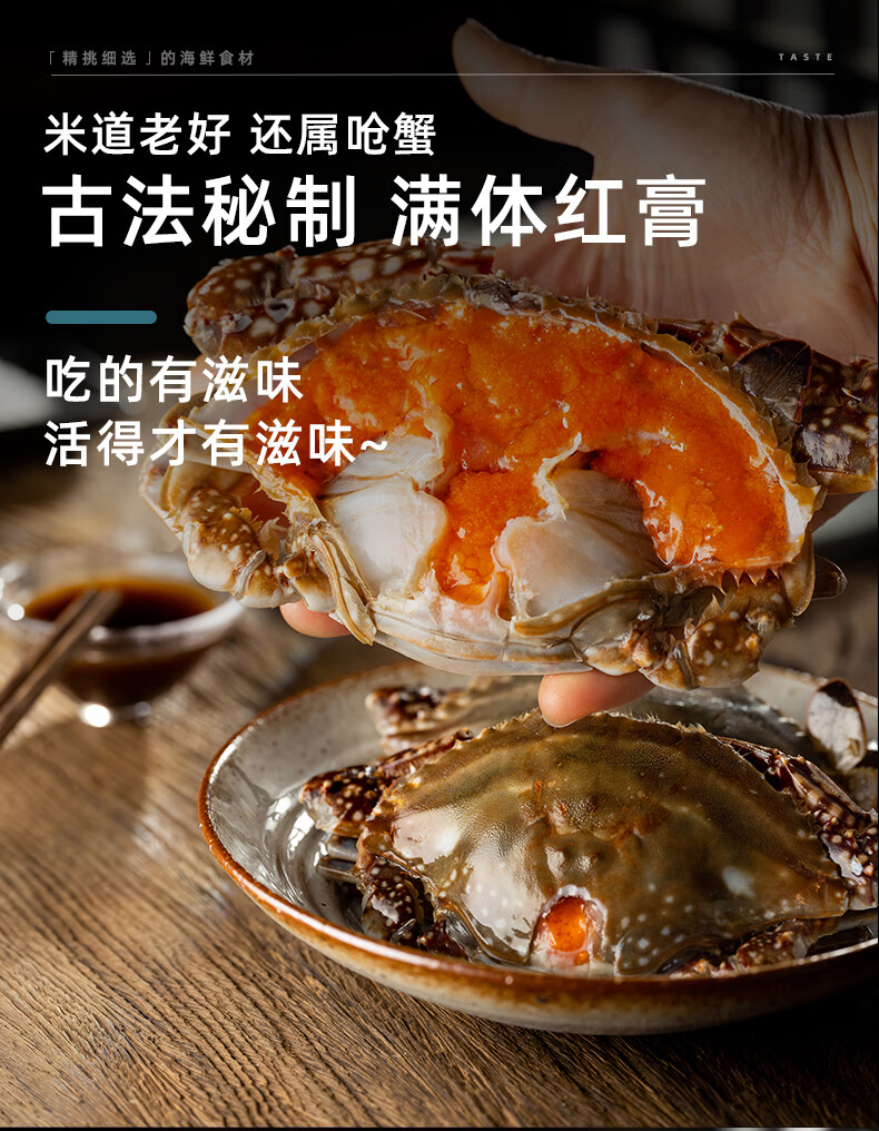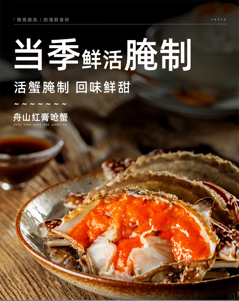 遇上鲜舟山红膏呛蟹整只生腌螃蟹梭子蟹宁波咸蟹醉蟹母蟹炝蟹6-8两一只